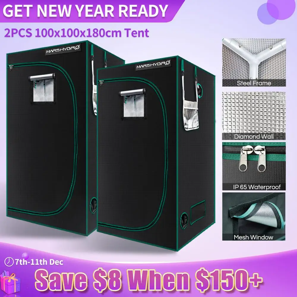2 pièces 1680D Marshydro tente de culture hydroponique d'intérieur 100*100*180cm kit de culture système de culture intérieur complètement LED