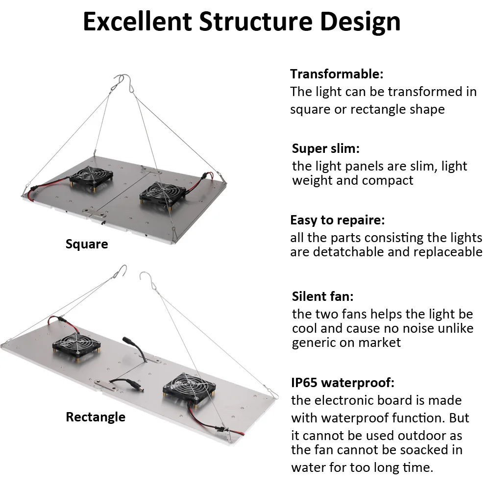 Caractéristiques:Full spetrum/Dimmable/Timer/Transformable/IP65 Waterproof
