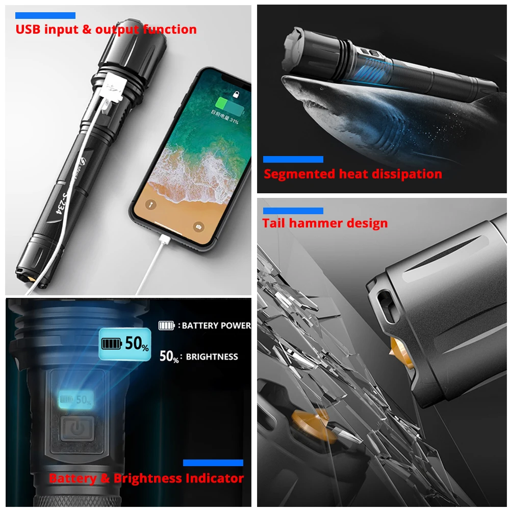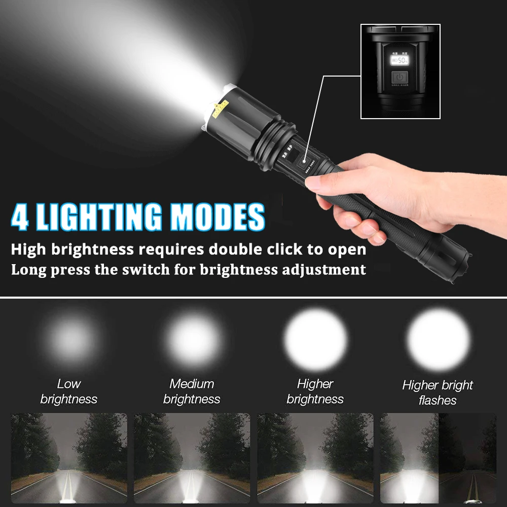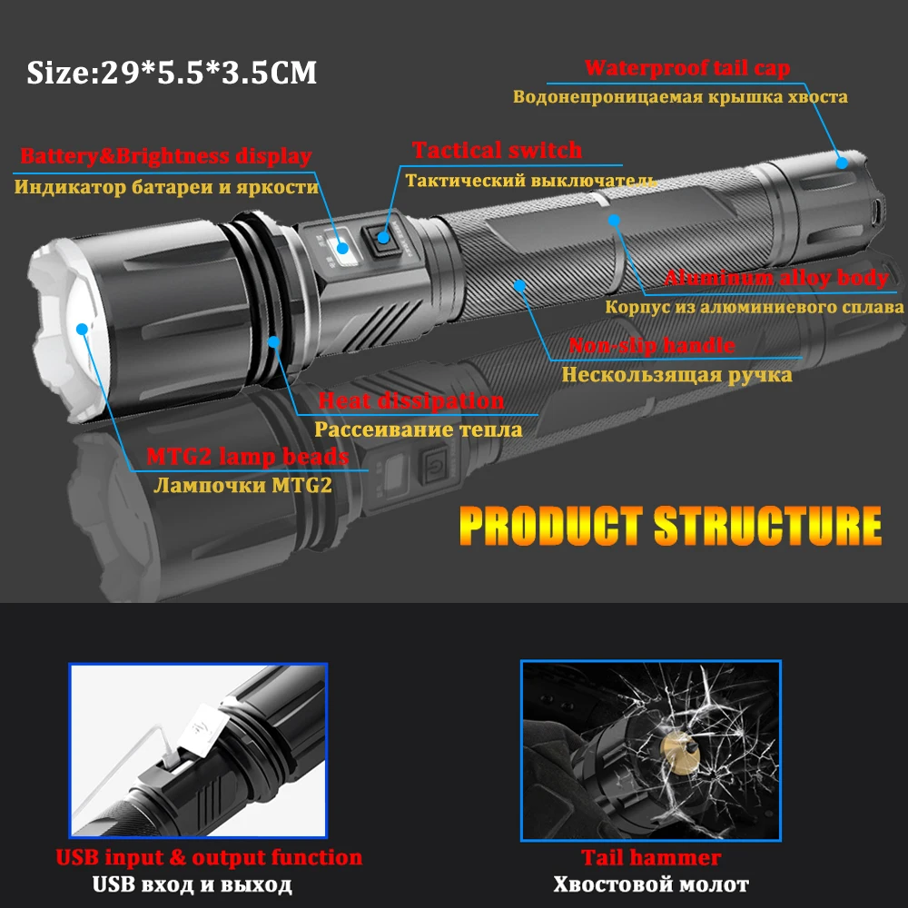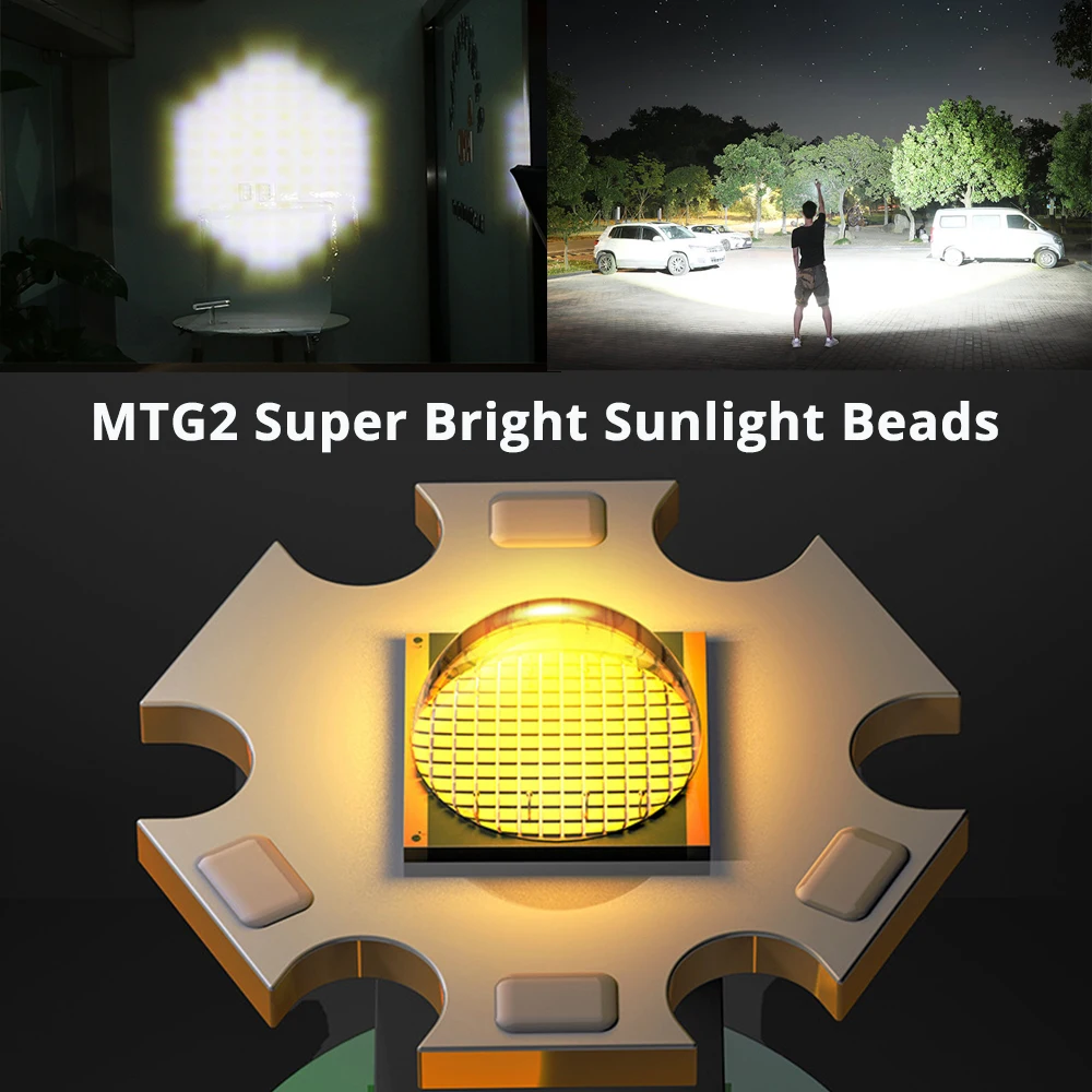 Lampe de poche étanche avec mèche MTG2 4 modes d'éclairage pour l'aventure lampe de poche étanche avec les rayons du soleil 4 modes d'éclairage LED très brillante.