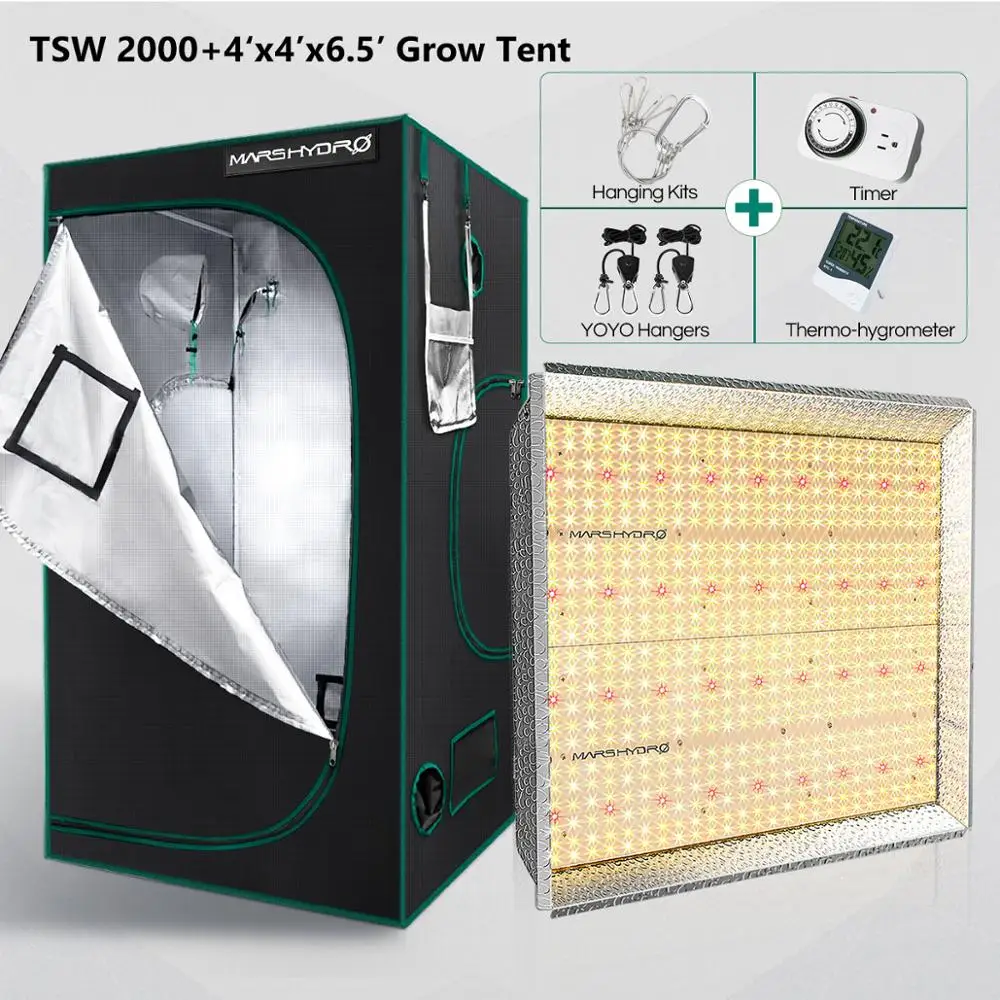 Mars Hydro-chambre de culture intérieure TSW 2000W et 120x120cm tente de culture LED éclairage à spectre complet pour culture hydroponique de plantes végétation/floraison remplace HPS/HID.