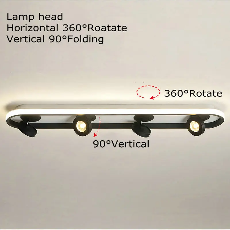 Plafonnier rotatif Long noir design moderne Spot lumineux de plafond lumière à intensité réglable idéal pour une chambre à coucher un vestiaire ou un couloir modèle LED.