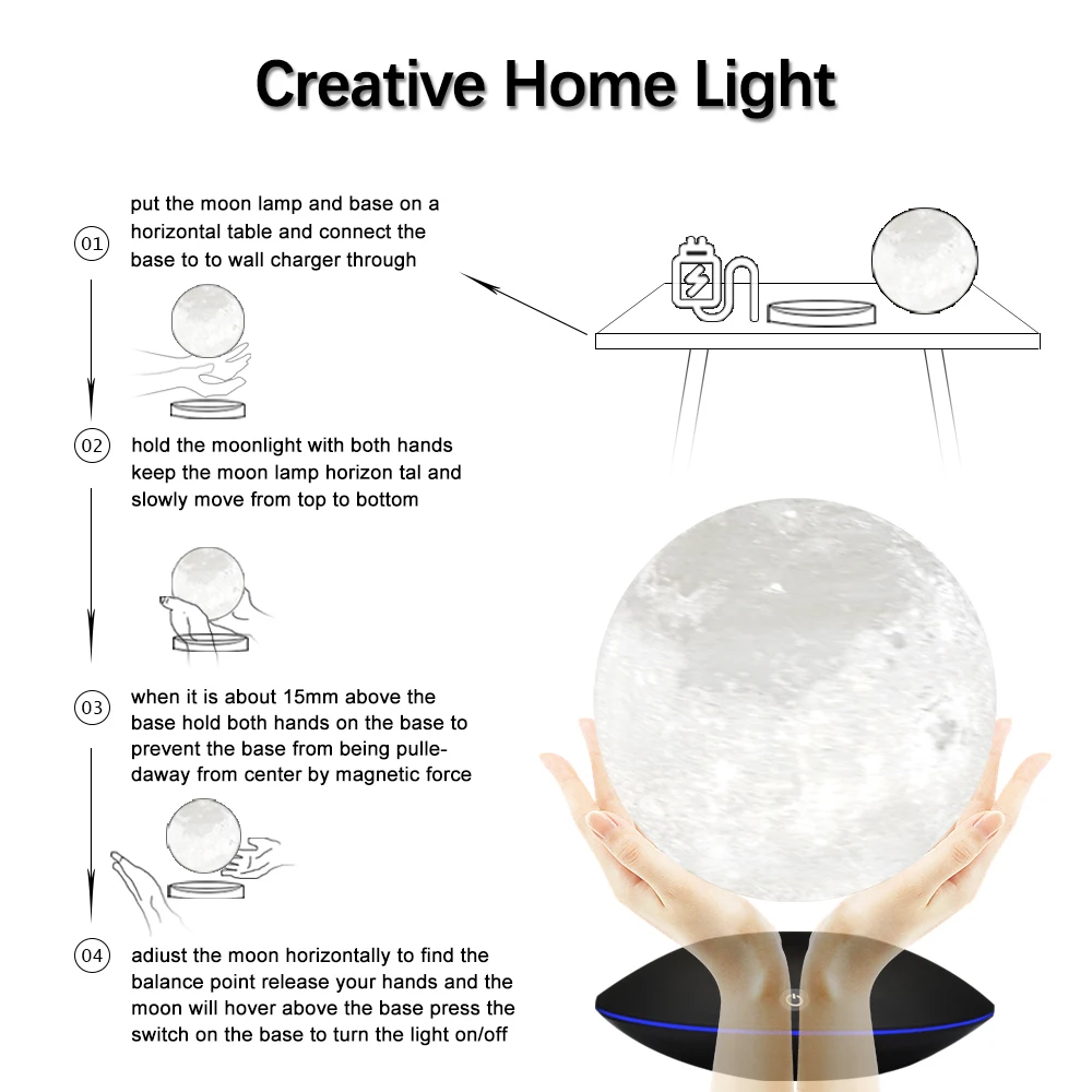 Veilleuse magnétique en 3D flottant à 13.5CM lampe lunaire romantique flottant à 360 degrés décoration pour la maison le bureau la chambre à coucher.
