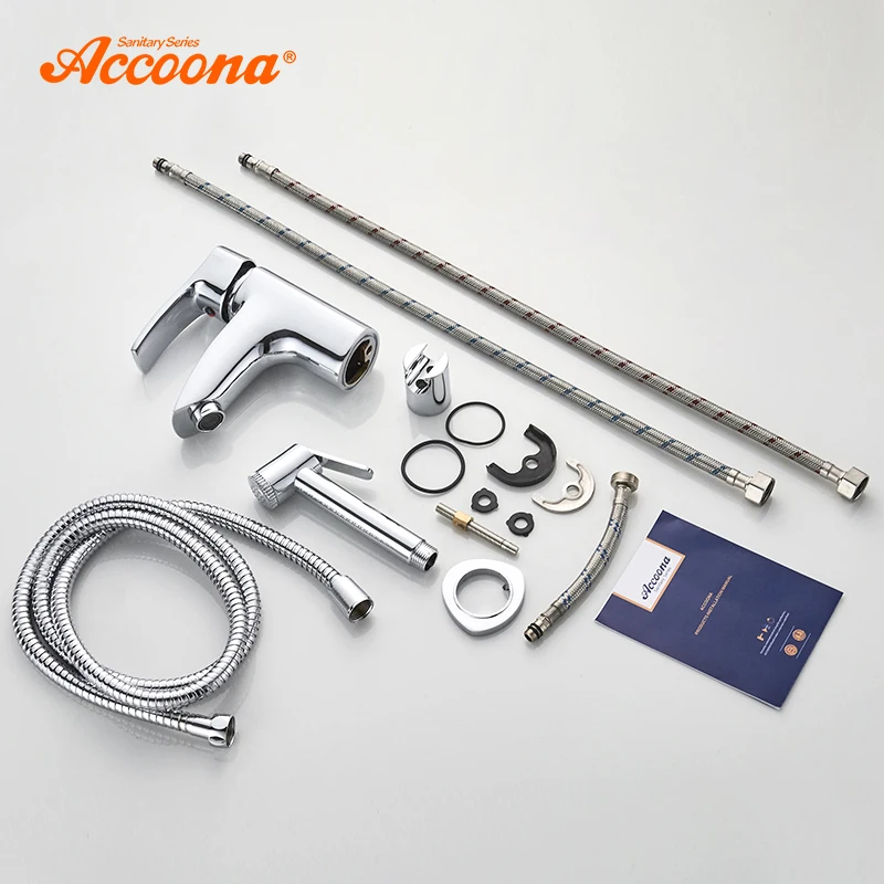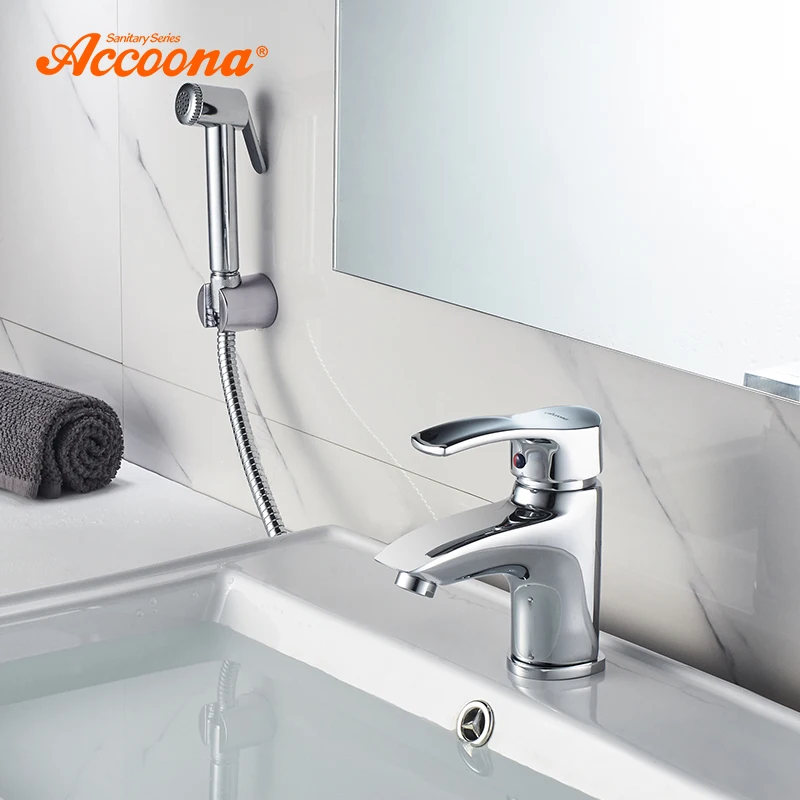Accoona robinet mitigeur de salle de bains robinet de lavabo en laiton massif poli et chromé à une poignée avec douchette montée sur le pont A9203.
