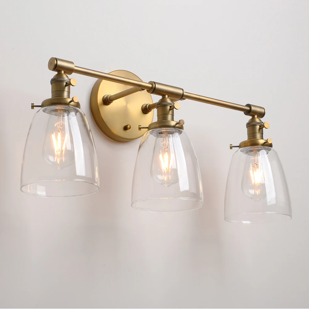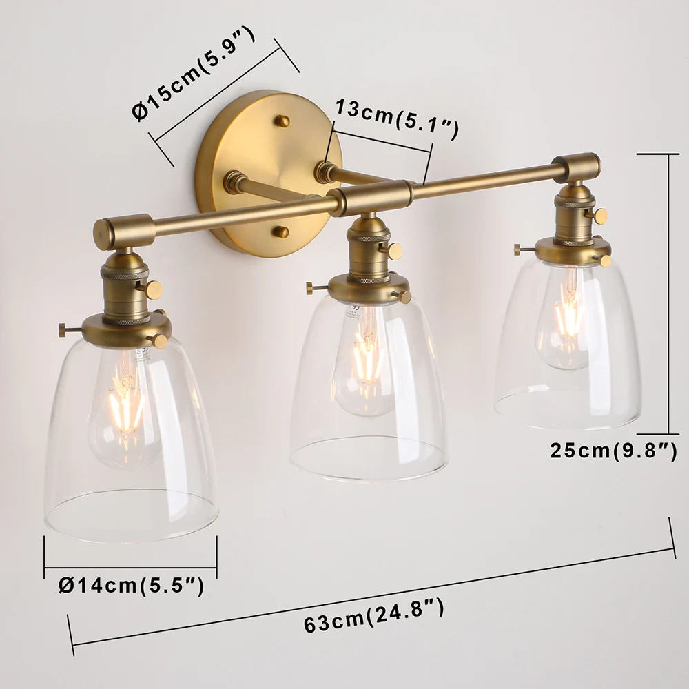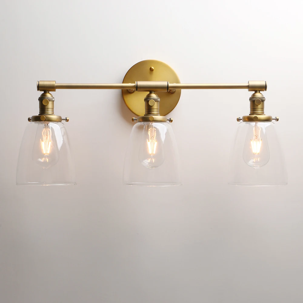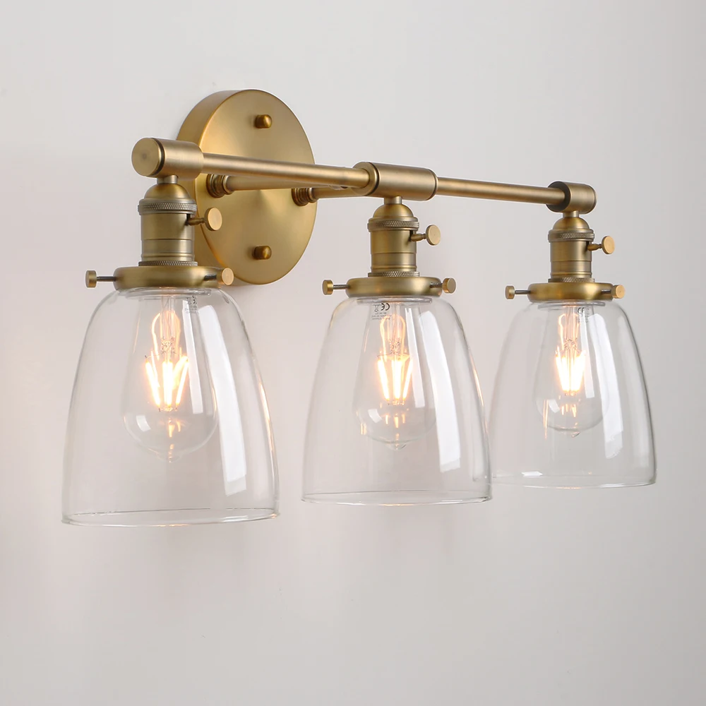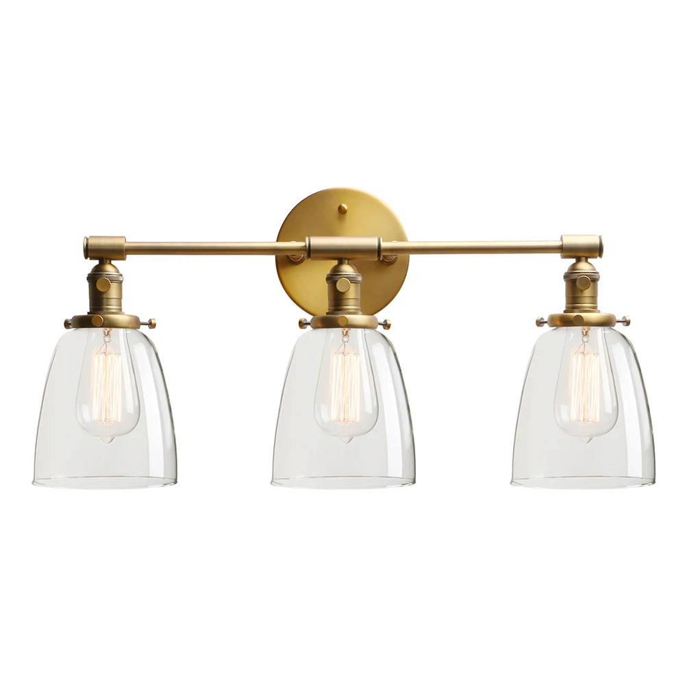Applique murale industrielle Permo 3 lumières appliques noires avec abat-jour en verre transparent en forme de dôme de 5.5 pouces
