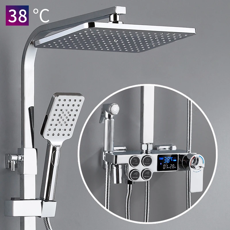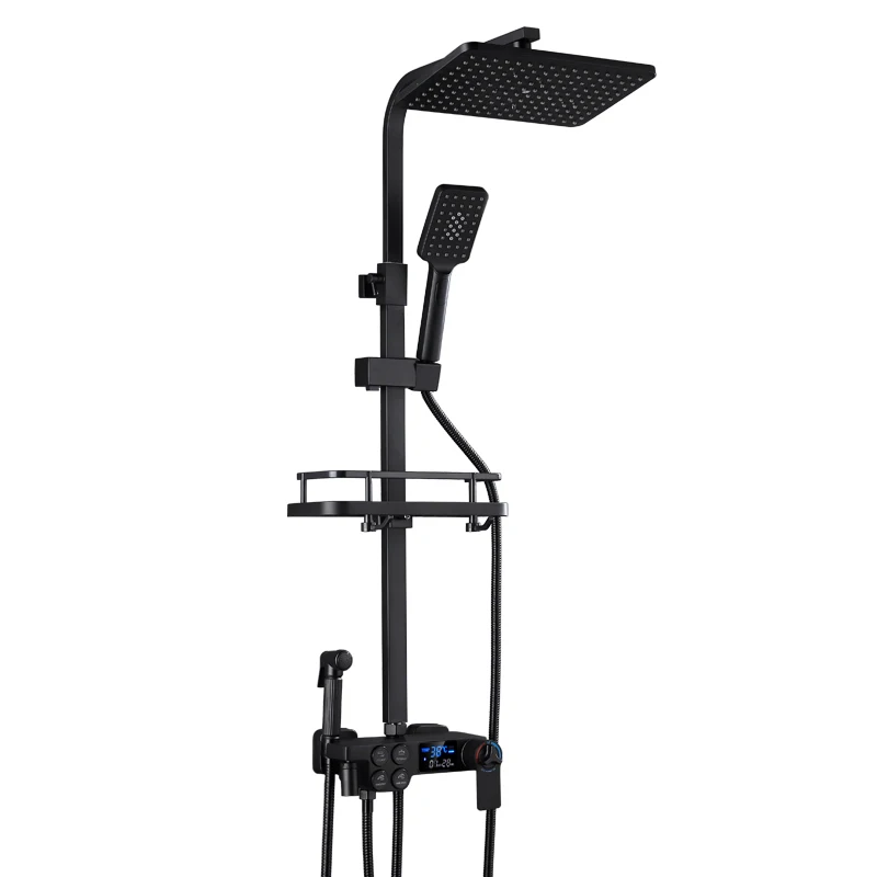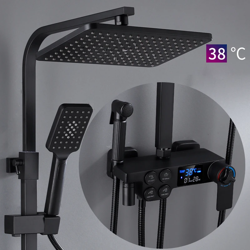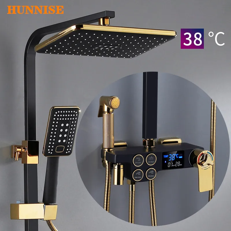 Ensemble de douche numérique de luxe en or noir système de douche thermostatique pluie Spa pomme de douche en laiton robinet de baignoire ensemble de douche numérique.