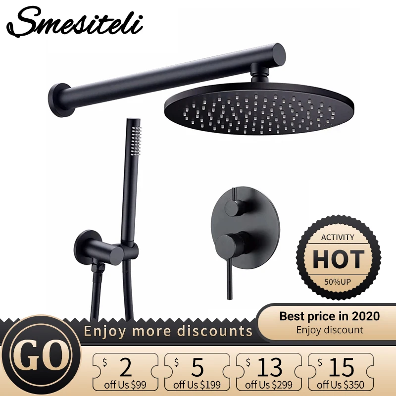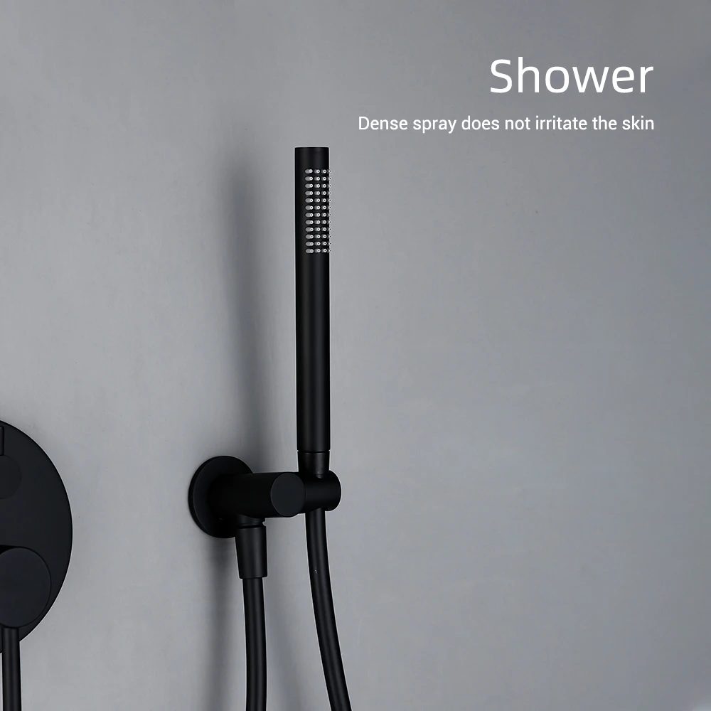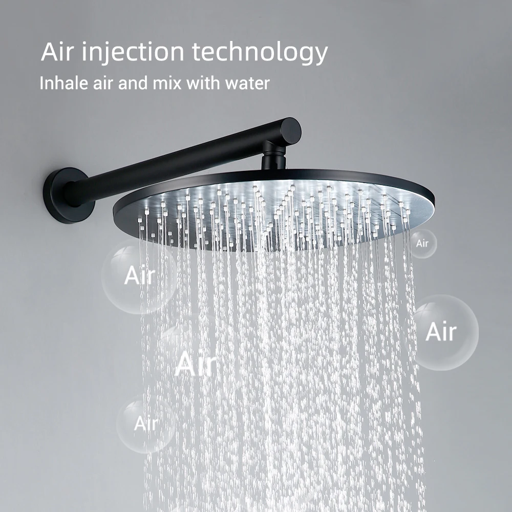 Ensemble de système de robinet de douche de pluie de salle de bains mitigeur de bain noir mat Rose en laiton inverseur à main 8-16 "Kit de bras mural de tête.