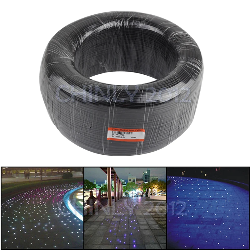 Fibre optique lumineuse à embout noir câble Fiber optique haute luminosité 350 à 3mm PMMA 0.75m pour la décoration de projet.
