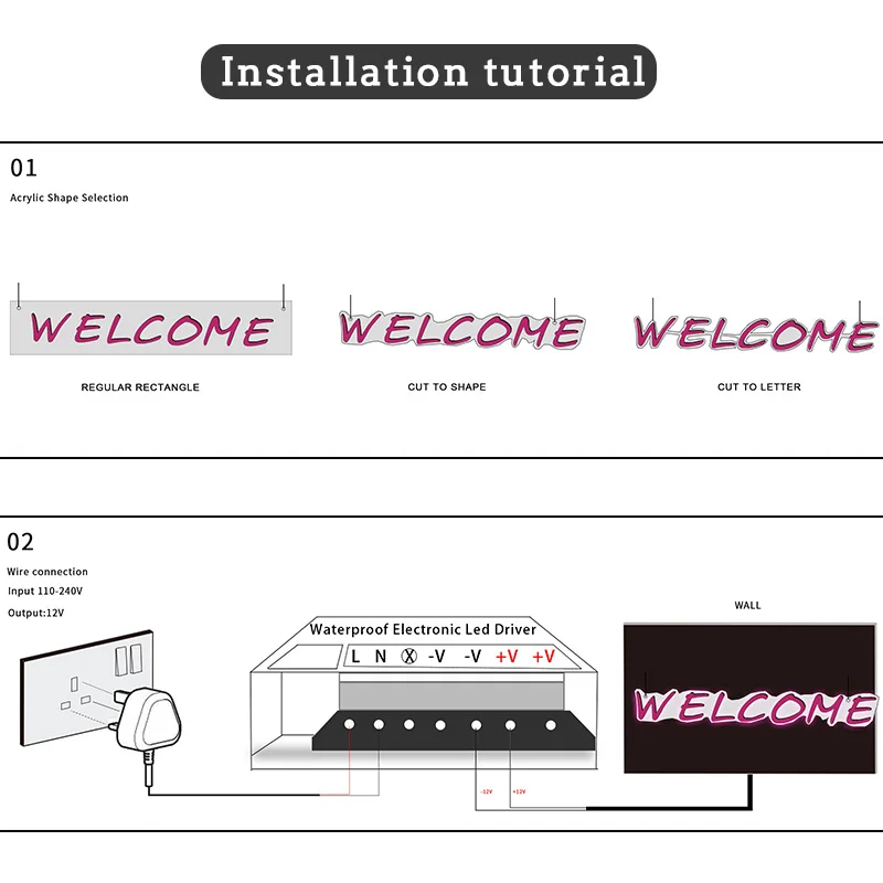 Flex personnalisé Led 3D lumière chaude 12V permet de rester à la maison acrylique néon signe maison chambre décoration Ins