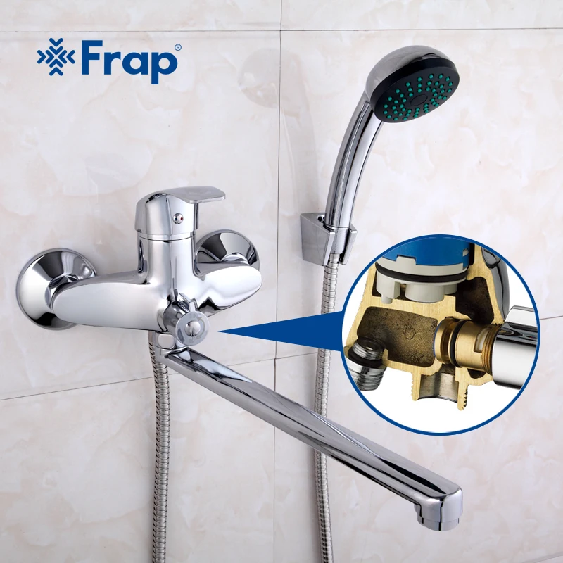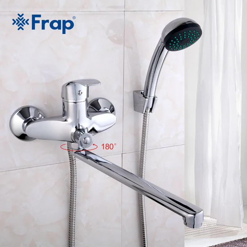 FRAP sortie robinet baignoire laiton 30cm avec le corps en laiton tourné robinet de la salle de bains et de la douche quatre options de poignée mélangeur d'eau de bain.