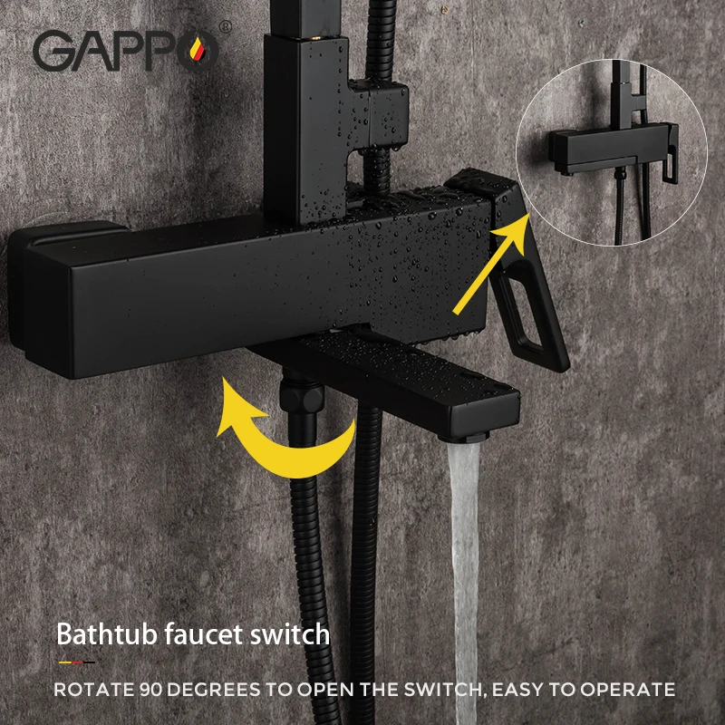 GAPPO mélangeur d'eau chaude et froide robinet noir salle de bains robinets en laiton baignoire cascade système de douche noir mélangeur de robinet noir.