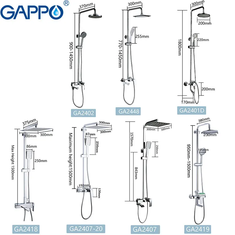 GAPPO système de douche salle de bain robinet de douche robinet mitigeur de bain ensemble de robinet de baignoire cascade ensemble de douche chrome pluie pomme de douche