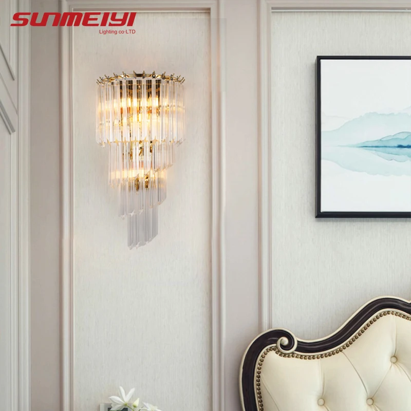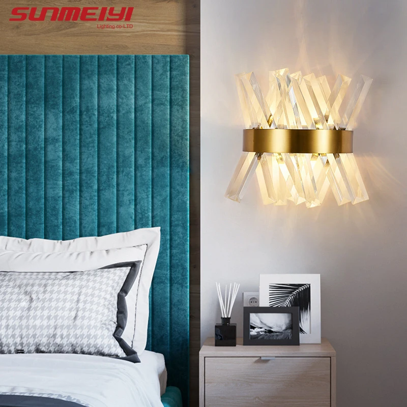Lampe murale d'intérieur en or cristal minimaliste pour salon chambre à coucher chevet porche nordique LED