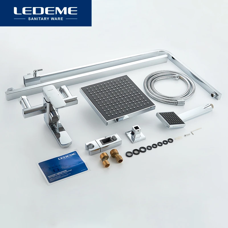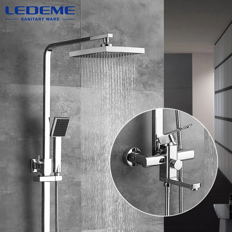 LEDEME moderne carré Chrome pluie robinet de douche robinets douche à main pulvérisateur mélangeur simple support double contrôle L2433