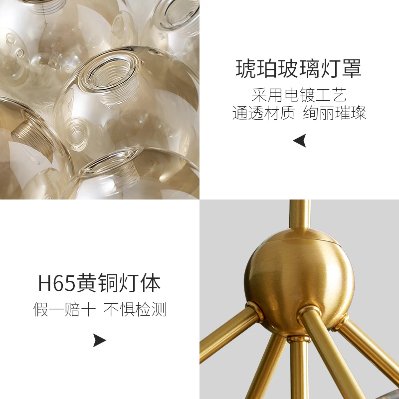 Moderne cuivre LED lustre salle à manger verre éclairage chambre cognac verre boule restaurant nordique salon suspension lampe.