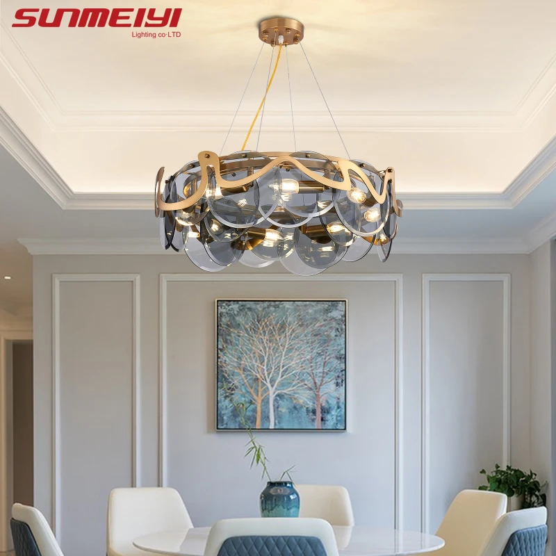 Plafonnier suspendu en verre design Post-moderne design moderne style or design Art déco luminaire d'intérieur idéal pour un salon une cuisine ou une chambre à coucher LED