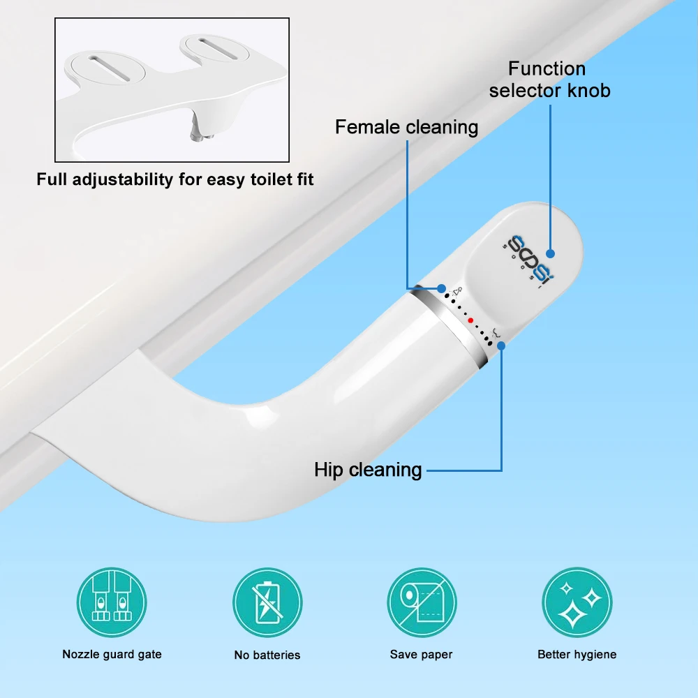 Pulvérisateur de siège de toilette Design mince Bidet musulman douche Double buse eau douce cul nettoyage inondation monté vieux et enfants.