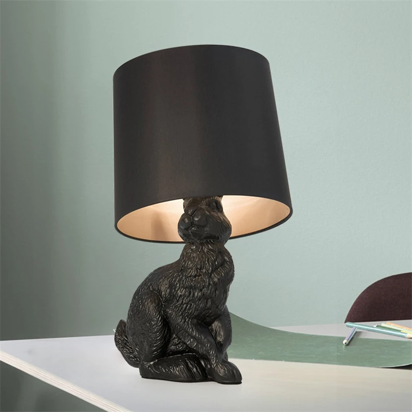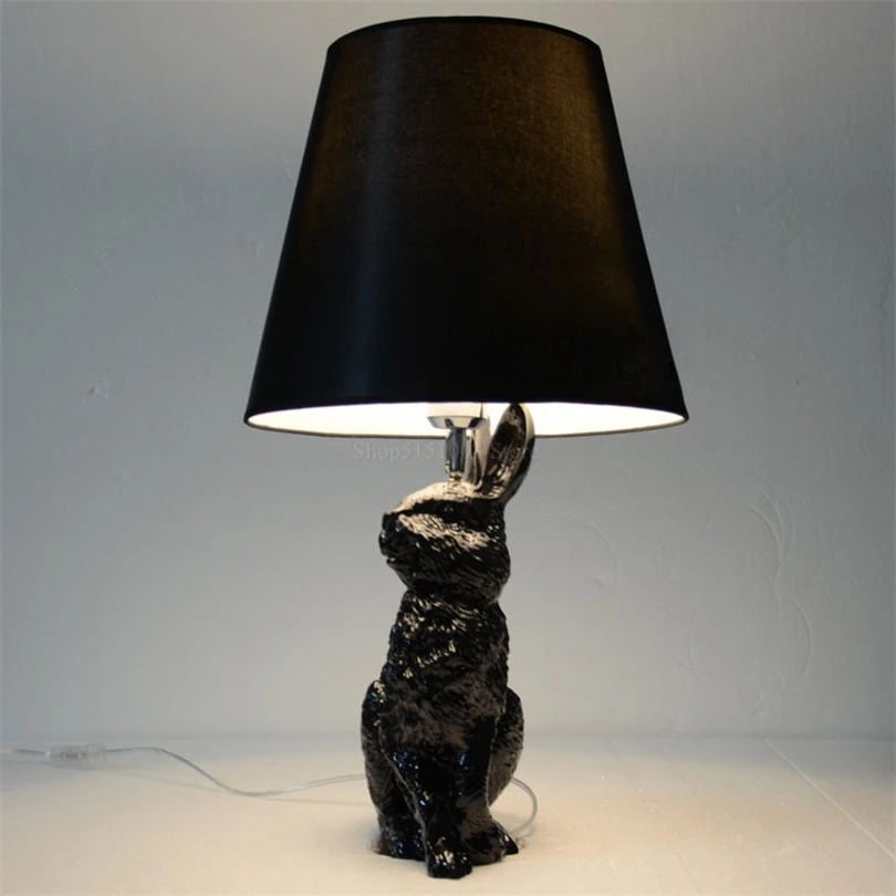 Résine lapin lumières moderne lampes de Table Led chambre lampe de chevet noir/blanc salon décor à la maison éclairage intérieur luminaire.