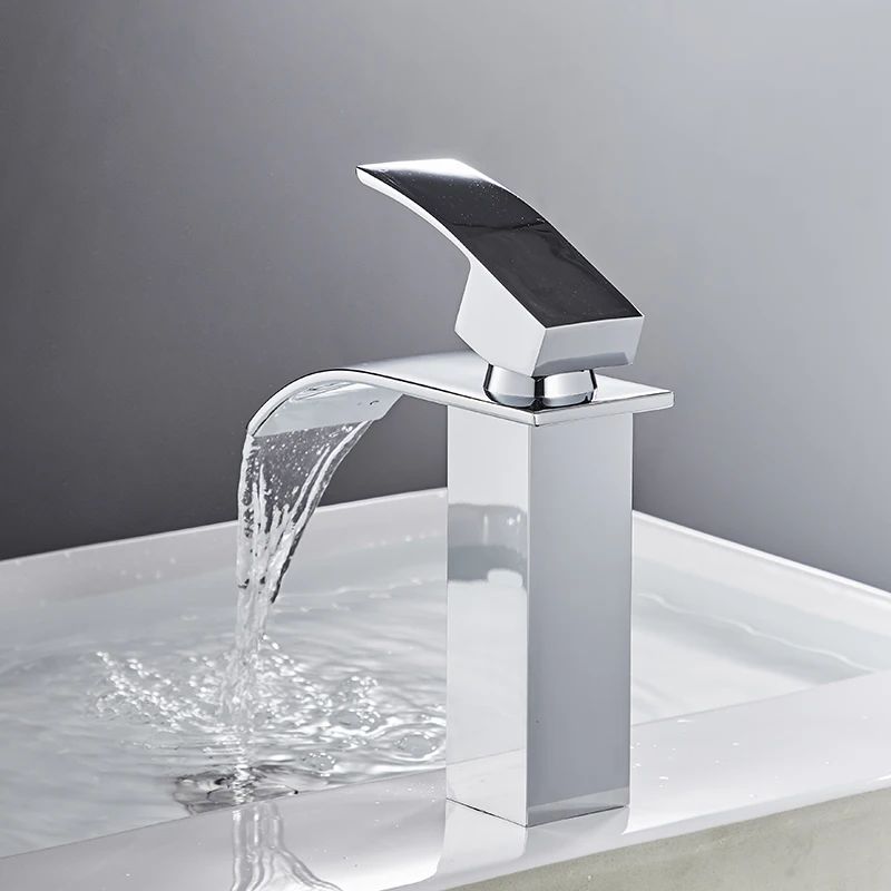 ROVATE salle de bain bassin robinet cascade pont monté eau froide et chaude mélangeur robinet laiton Chrome vanité navire évier grue