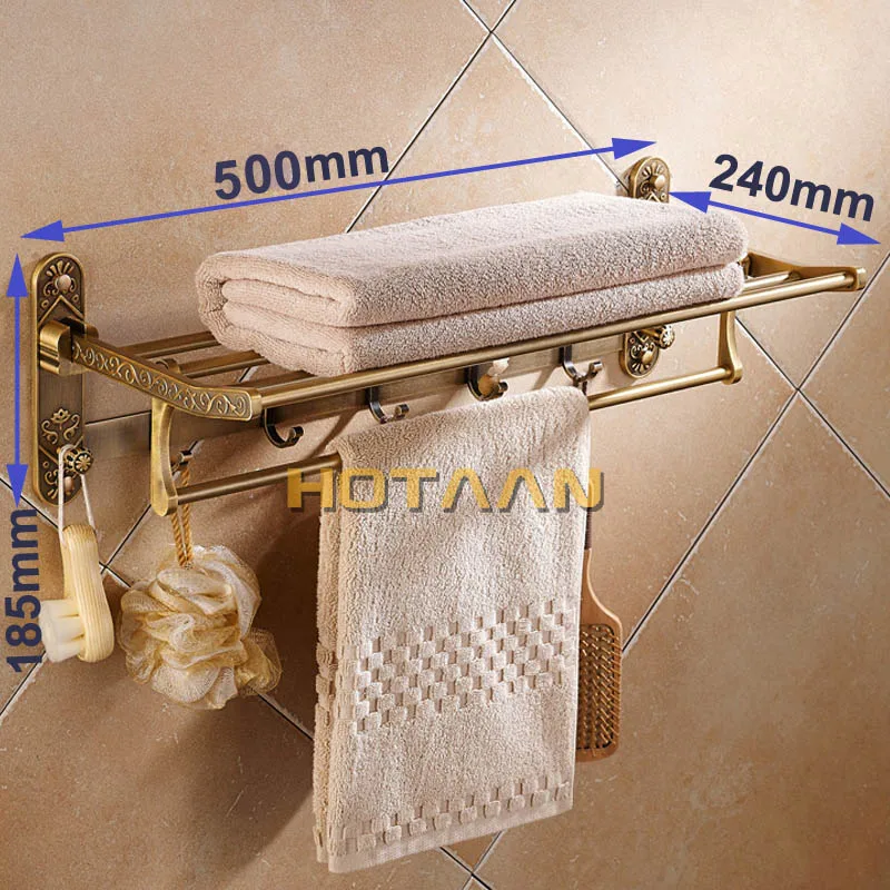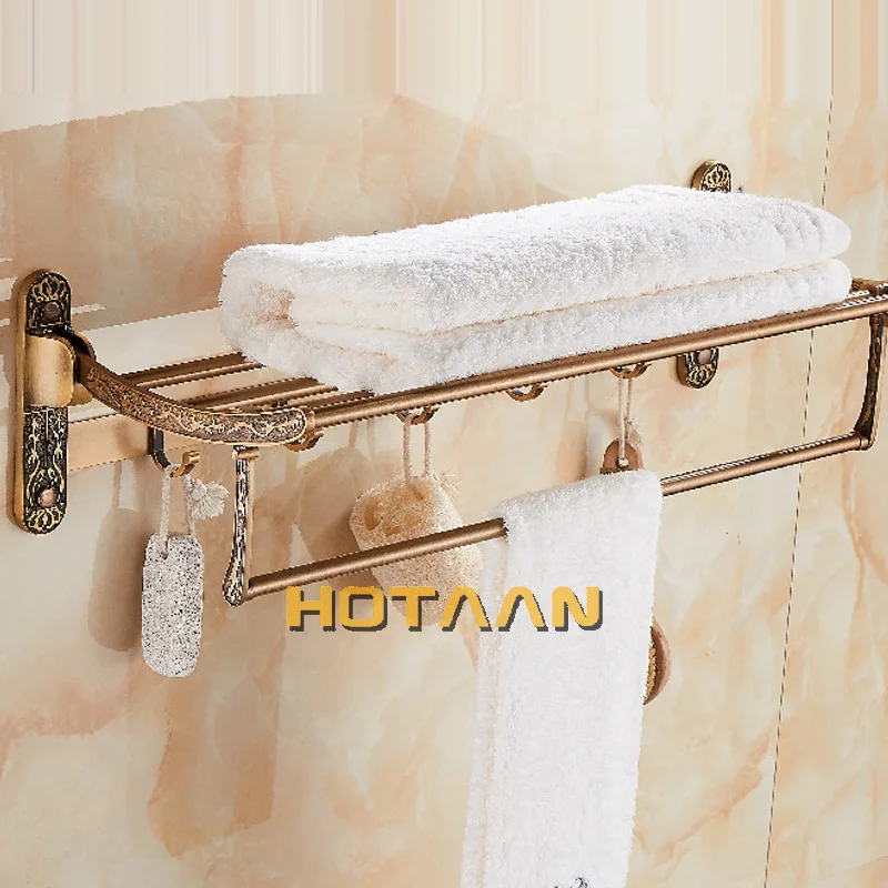 Serviette de bain en aluminium pliable support en laiton Antique salle de bain Active porte-serviettes Double étagère avec crochets accessoires de salle de bain.