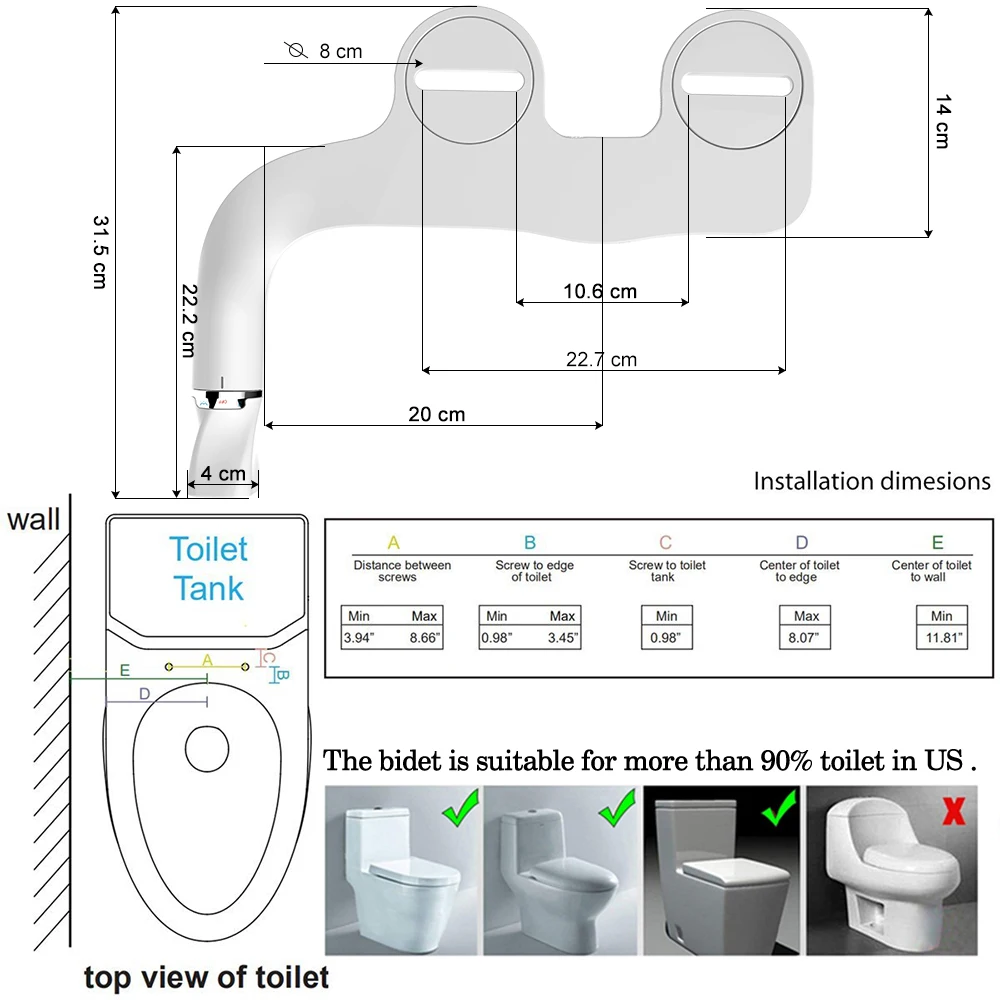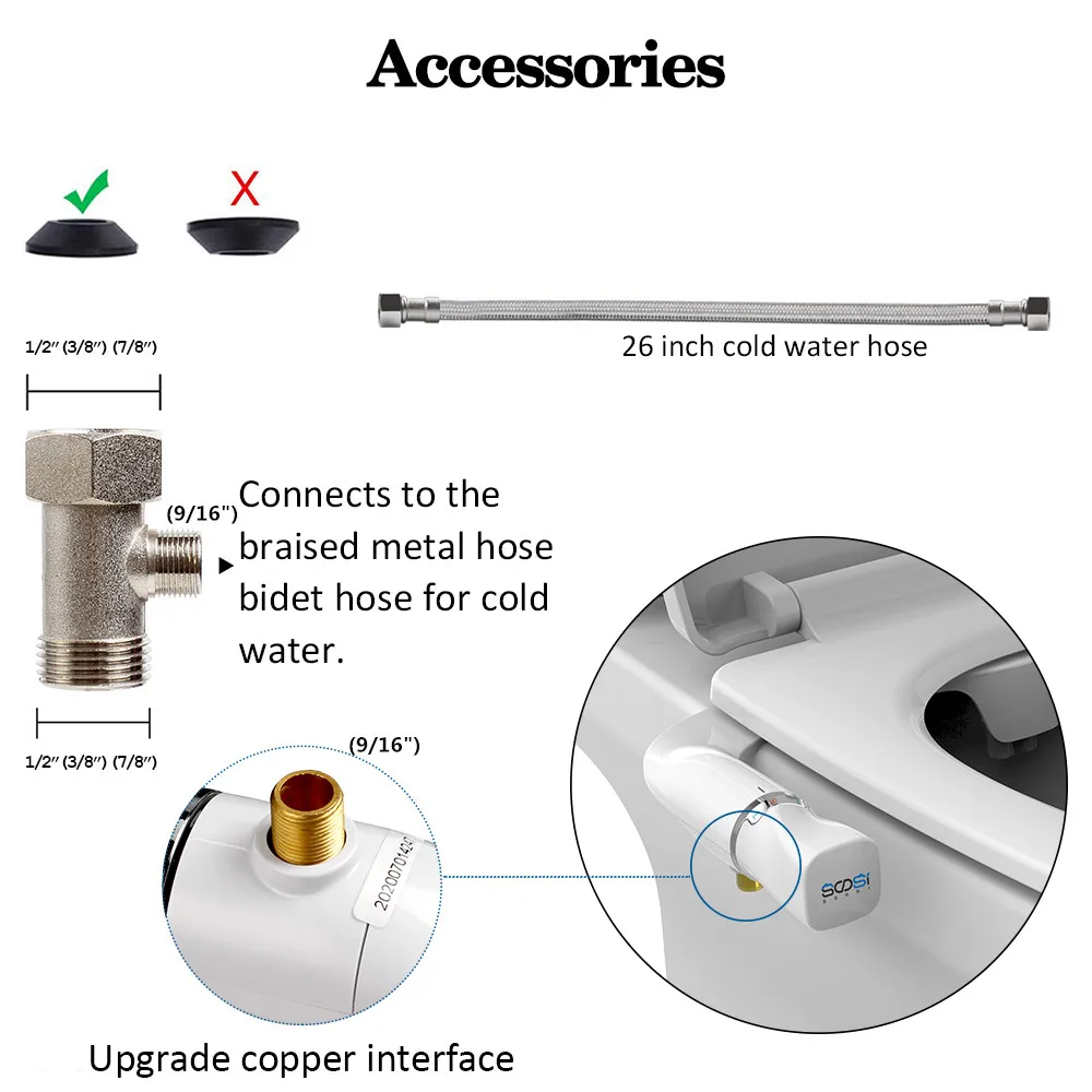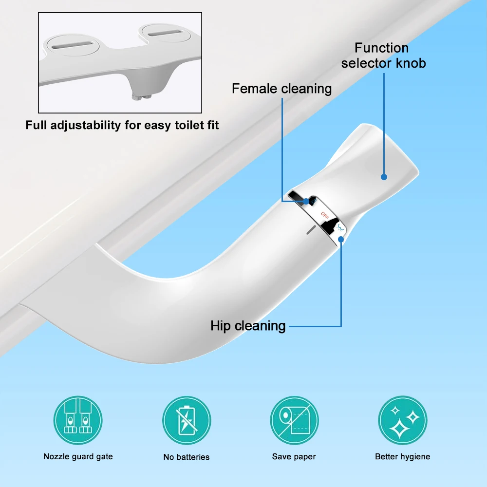 Siège de toilette fixation Bidet mince cul de lavage double buse régulation de la pression entrée d'eau en laiton Installation facile.