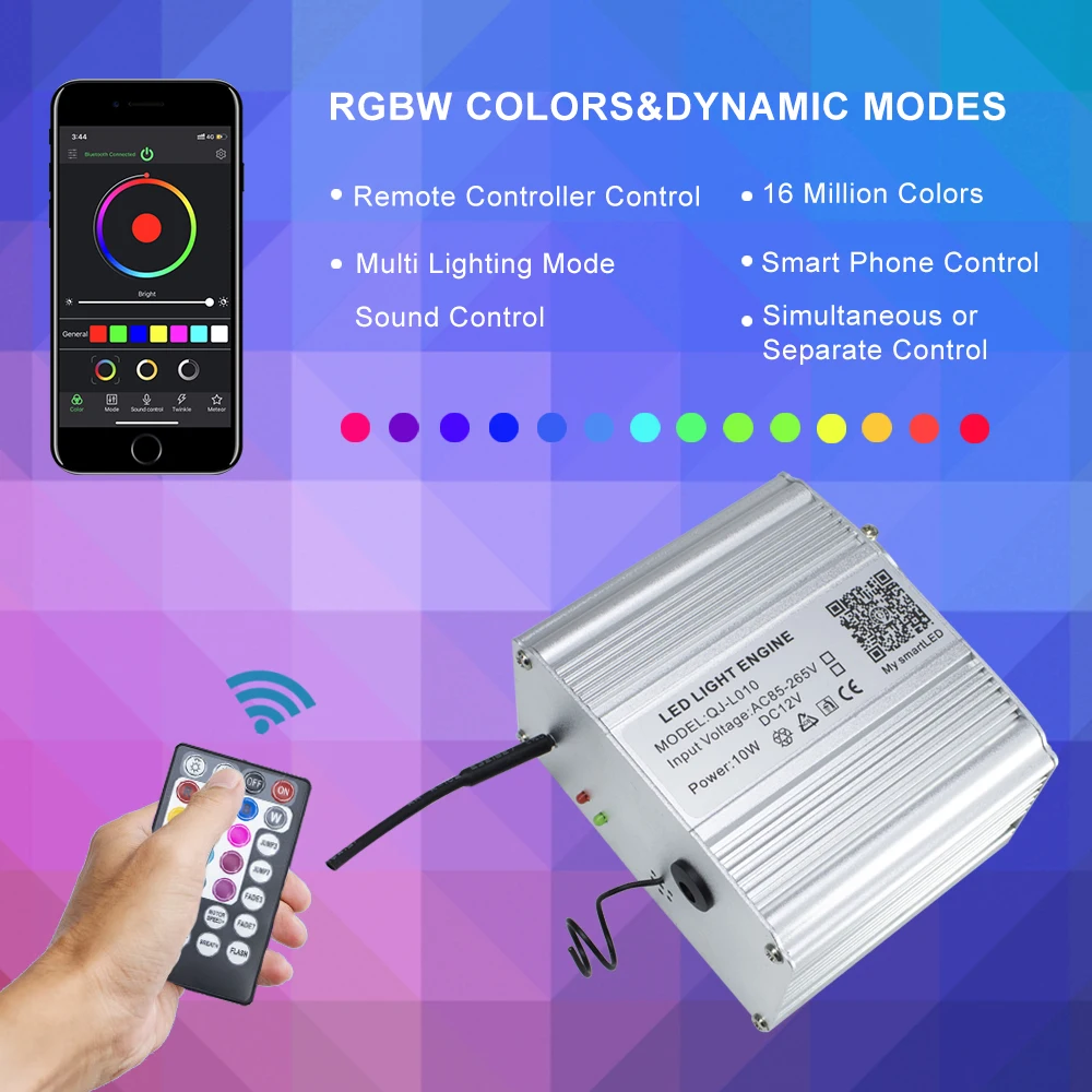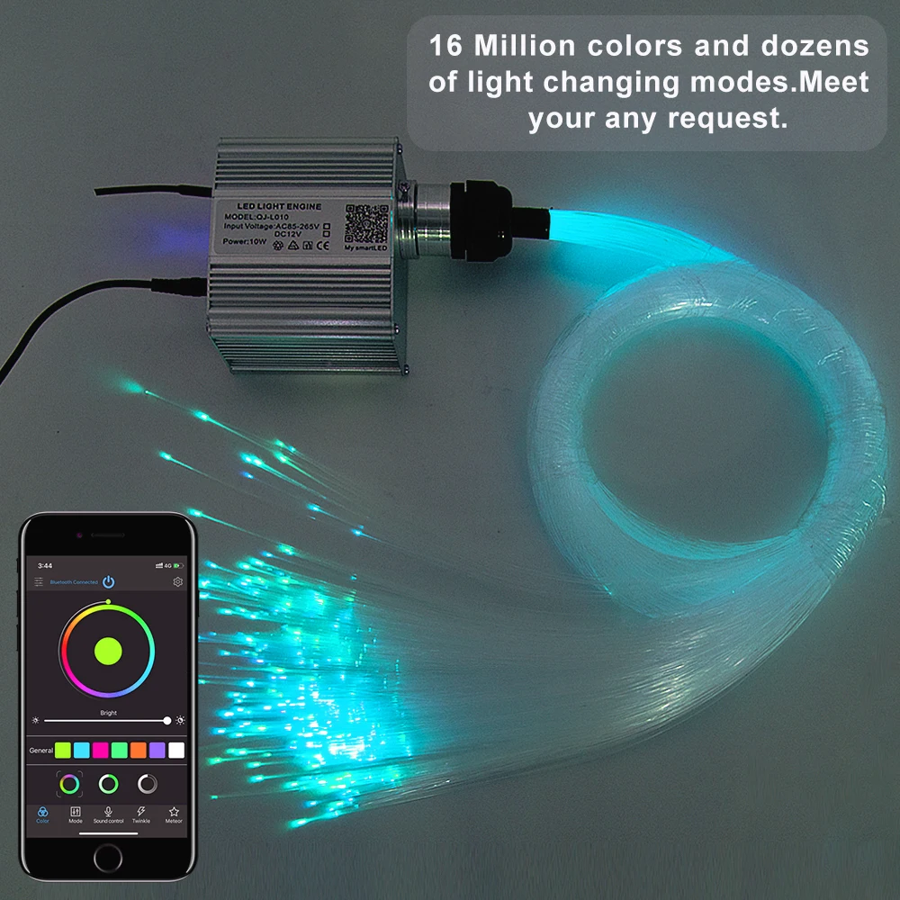 Voiture utilisation Bluetooth app 10W scintillent RGBW Fiber optique moteur léger LED étoilé plafonniers kit 150/200 pièces 0.75mm 2M avec 28key RF.