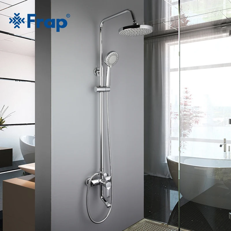 Frap robinet mitigeur avec pulvérisateur à main salle de bains robinets de douche à pluie ensembles de bain-douche muraux poignée unique F2418 1 ensemble.