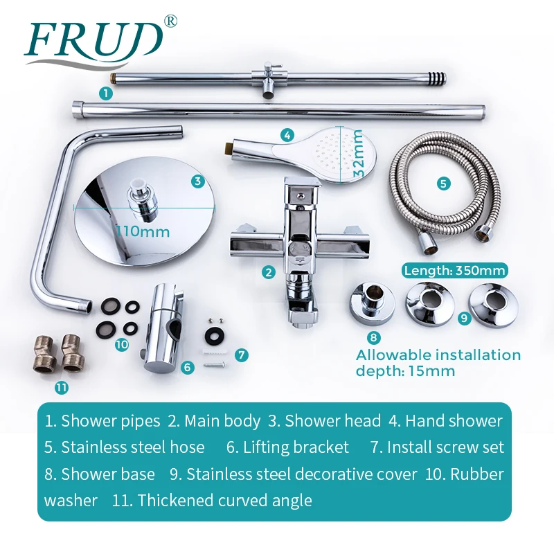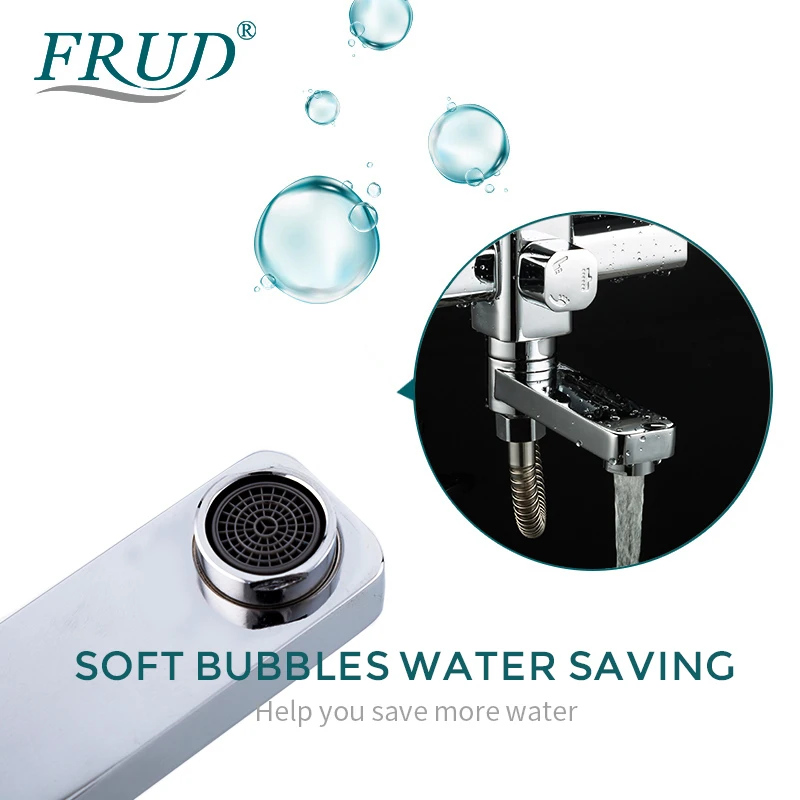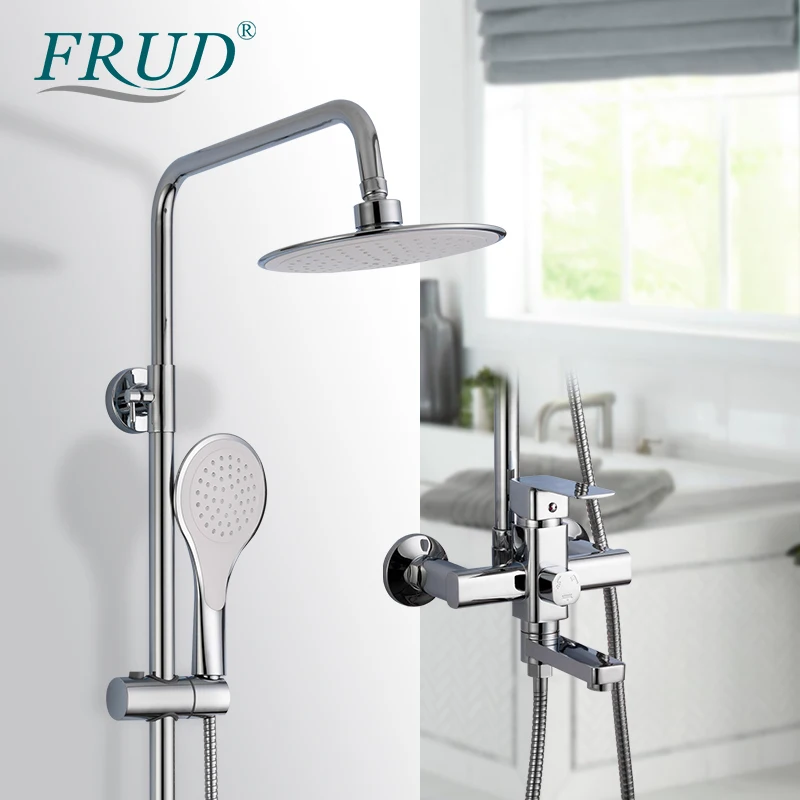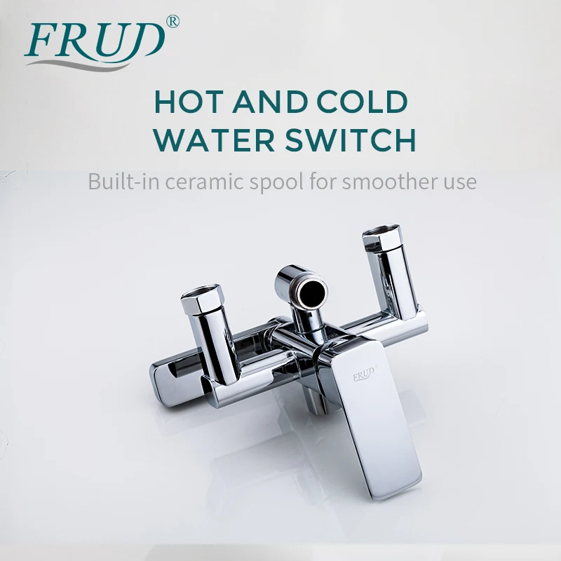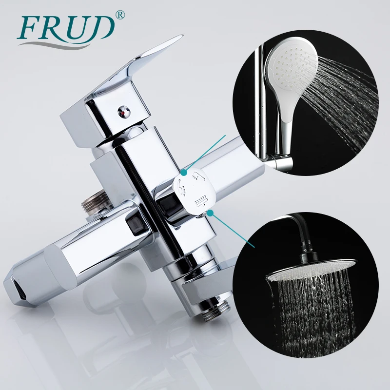 FRUD mitigeur bain-douche chromé de qualité robinet de baignoire bec rotatif salle de bains système de douche pluie mural avec douchette