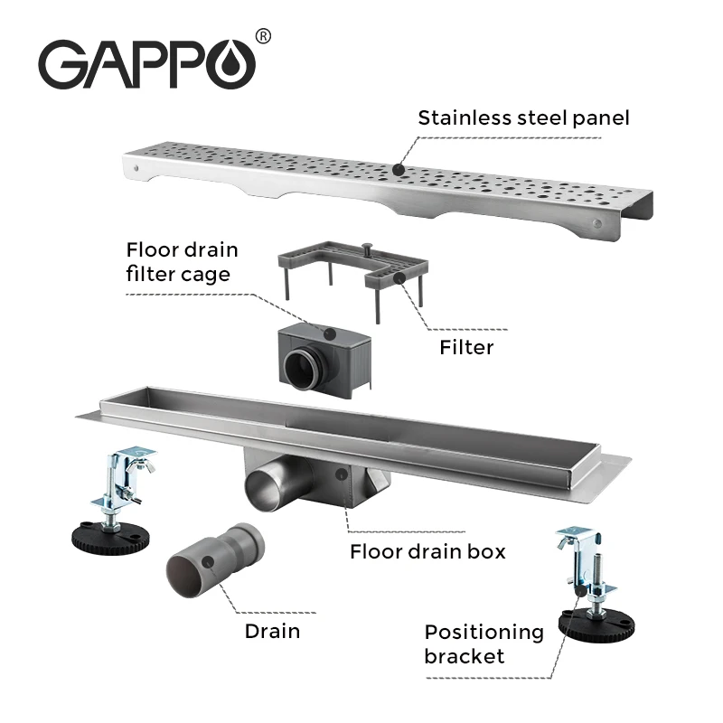 GAPPO-drain de sol en acier inoxydable pour salle de bains Long 70x500mm.