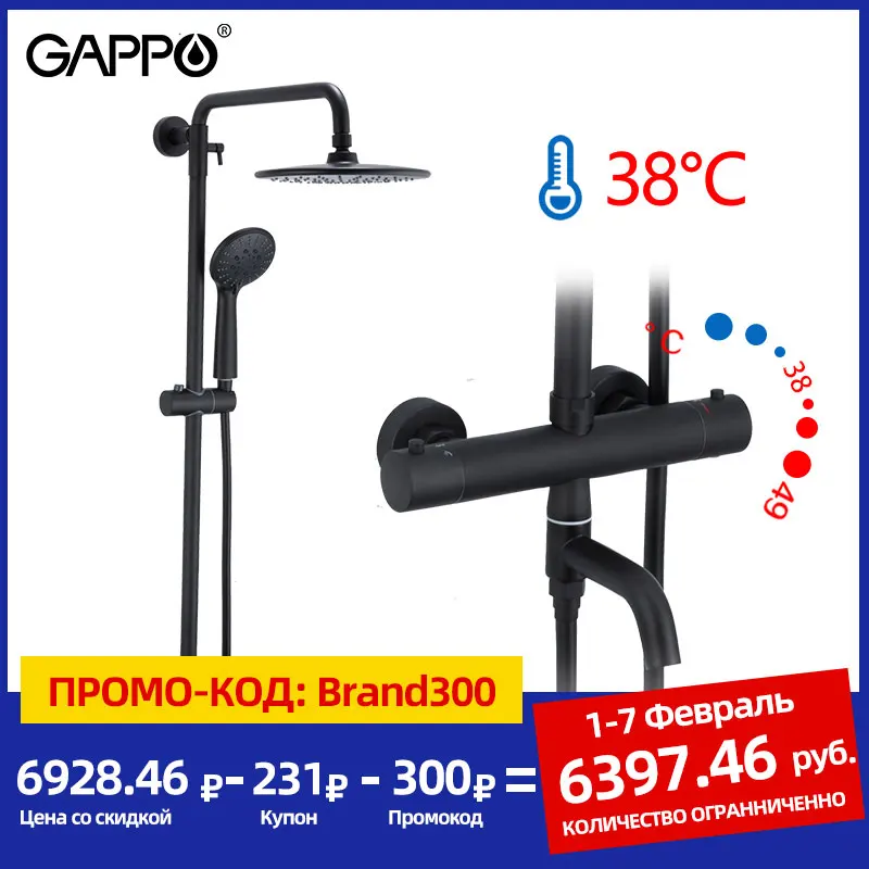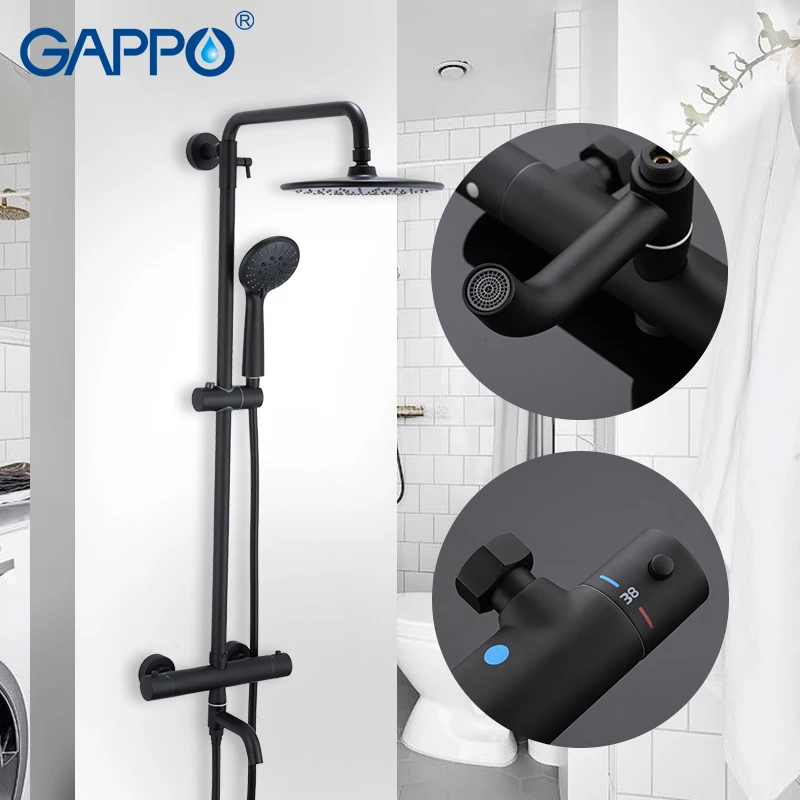 Gappo système de douche robinets de douche noirs robinets thermostatiques de température froide et chaude baignoire à grande hauteur