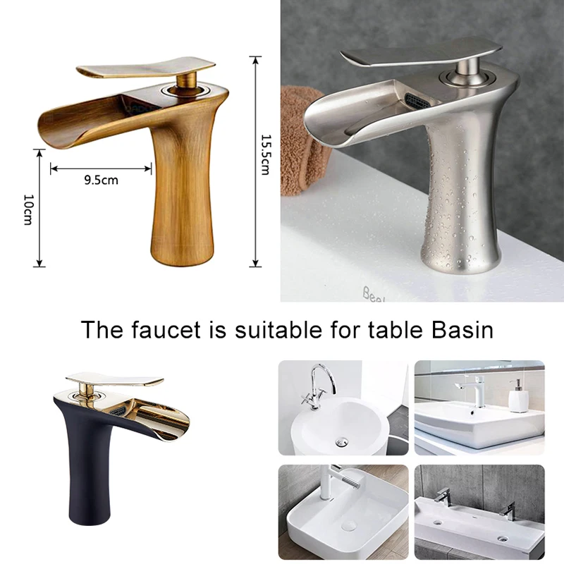 Grue mélangeur d'eau monté sur le pont cascade lavabo de salle de bains robinets d'évier chaud et froid Bronze Antique finition chromée ELM100