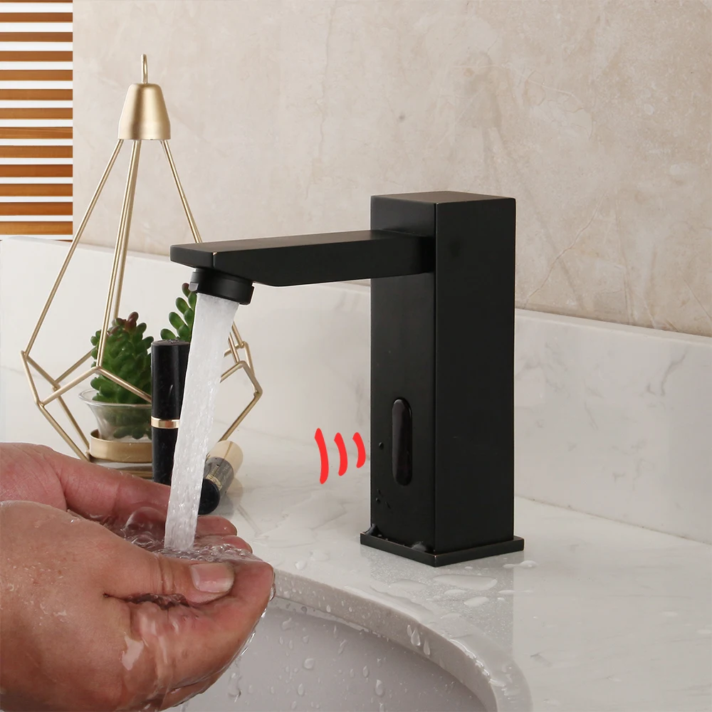 JIENI noir ORB capteur automatique robinet salle de bain bassin robinet en laiton massif mélangeur d'eau chaude et froide robinet de bassin infrarouge sans contact.