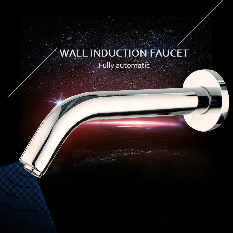 JIENI robinet à capteur mural robinet de salle de bains chromé noir robinet de salle de bains à capteur mural automatique à capteur libre robinet mitigeur de salle de bains