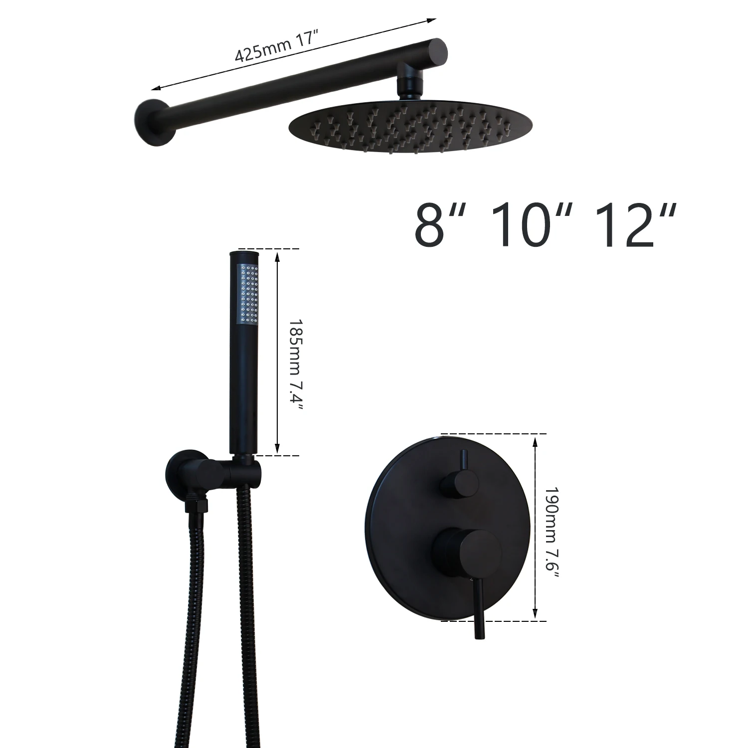 KEMAIDI ensemble de robinets de douche à main douchette Ultra-mince noire 8 10 12 pouces montage mural.