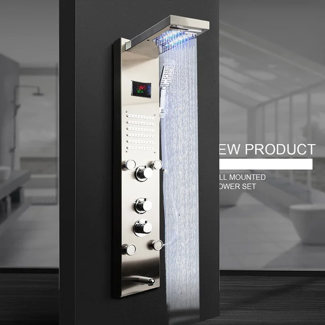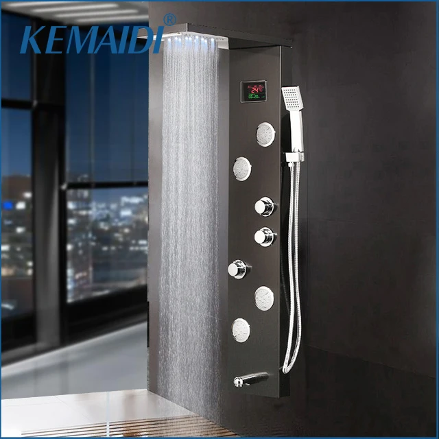 KEMAIDI robinet de bain système de Massage colonne de douche noire température du robinet affichage numérique panneau de douche LED corps Jets 12 choix.