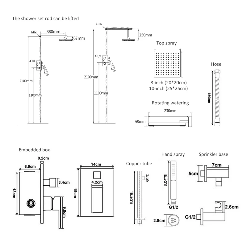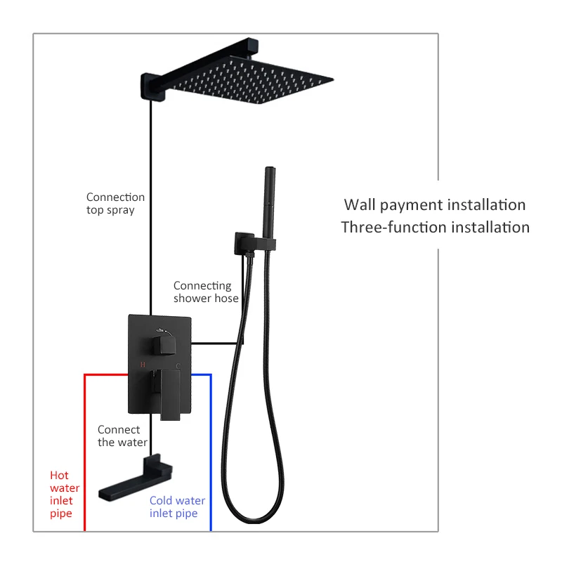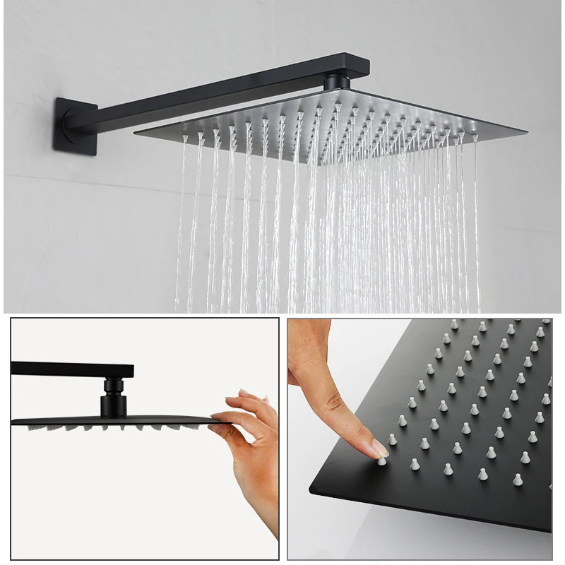 Mélangeurs de baignoire douche ensemble bain-douche mural robinets de salle de bain noirs avec douchette à main carré mural plafond de pluie ELS89.