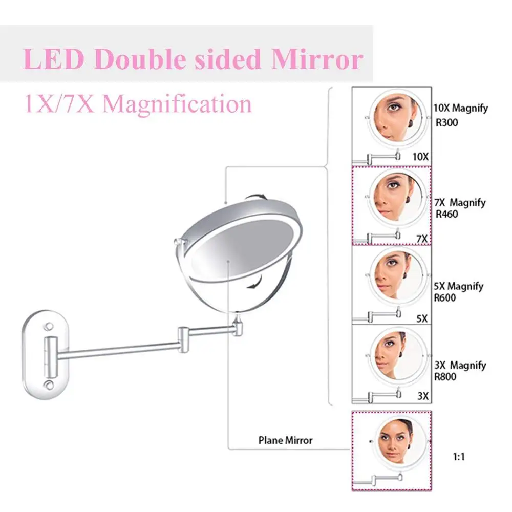 Miroir de maquillage mural de 8 pouces Miroir Double grossissant 1X & 10X bouton tactile.
