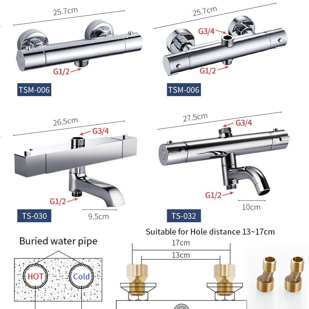 Mitigeur de douche de salle de bain robinet de douche thermostatique en laiton