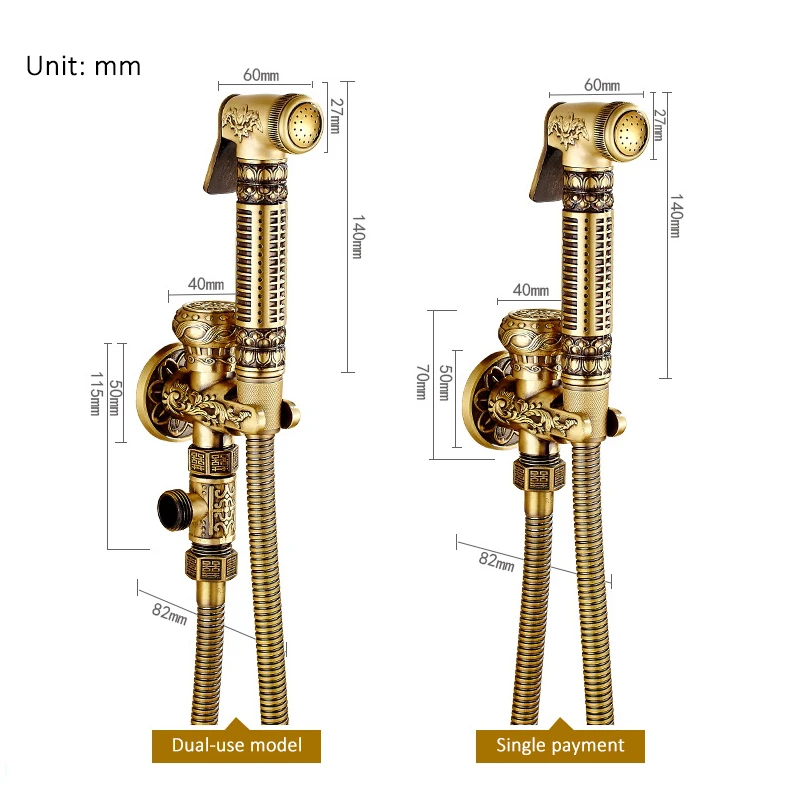Robinet de Bidet mural en laiton robinet de pulvérisation de toilettes robinet Antique de salle de bains pour vadrouille et nettoyage tuyau + support + pulvérisateur