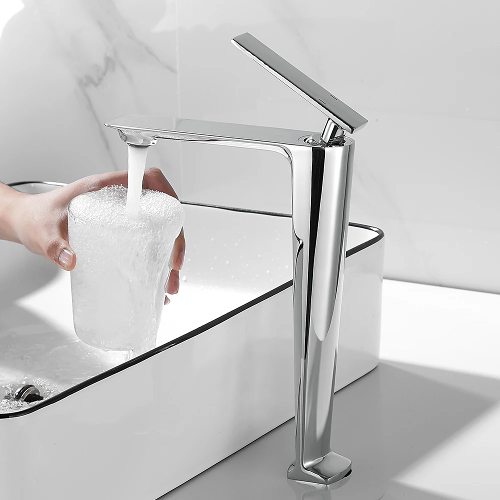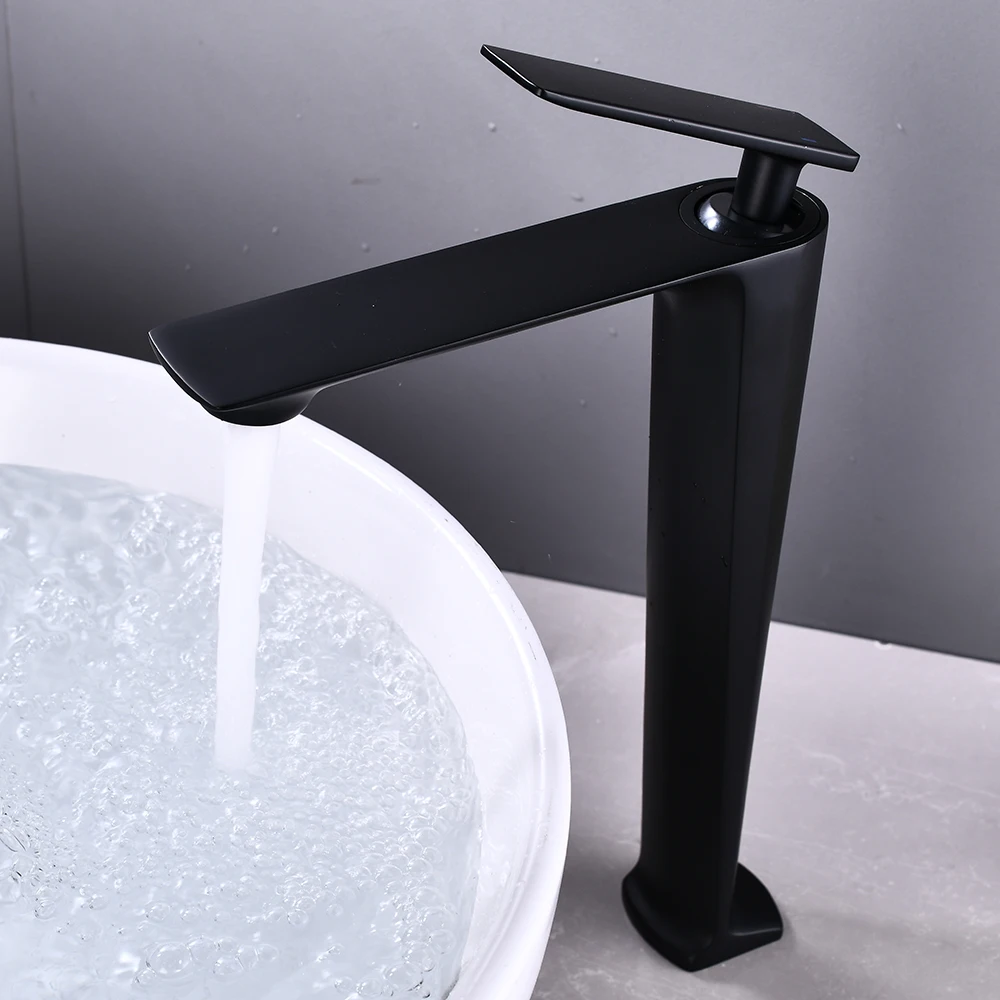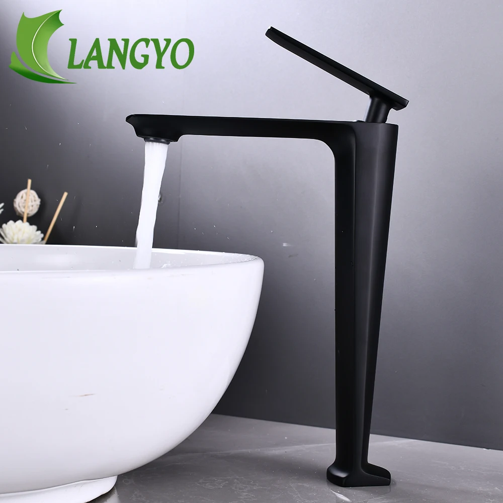 Robinet de lavabo à levier unique chaud et froid robinet de lavabo de grande taille noir/Chrome robinet d'évier mélangeur de lavabo robinet d'eau pont.