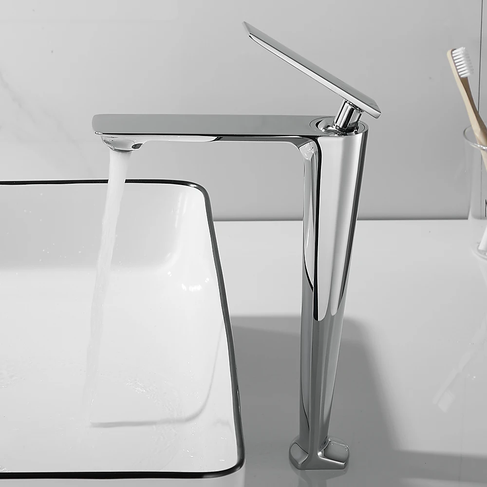 Robinet de lavabo à levier unique chaud et froid robinet de lavabo de grande taille noir/Chrome robinet d'évier mélangeur de lavabo robinet d'eau pont