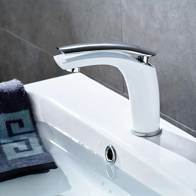 Robinet de lavabo ROVATE blanc monotrou monté évier robinets mélangeur froid et chaud pour robinet de bassin de salle de bain.