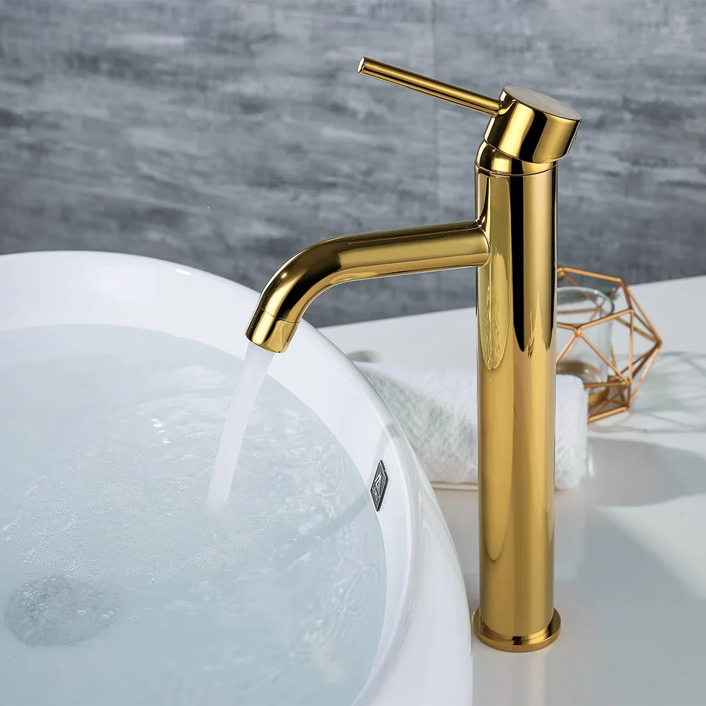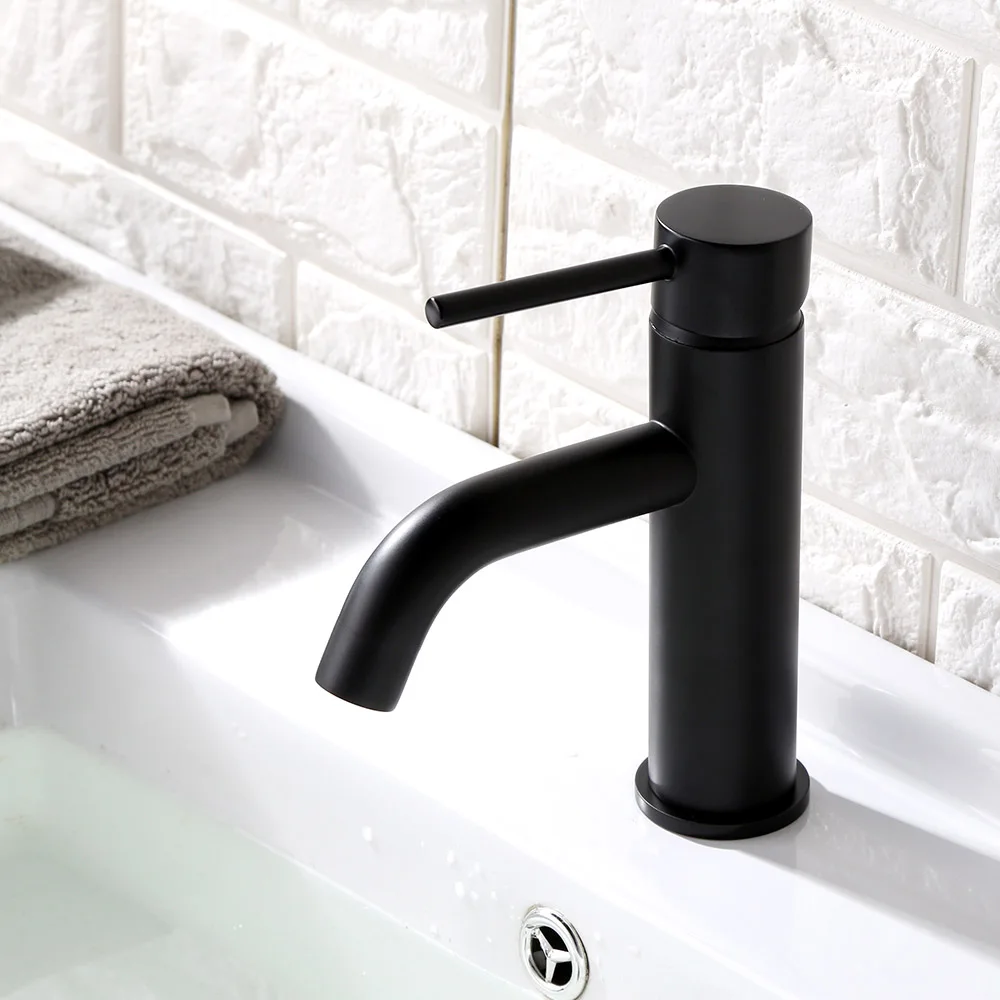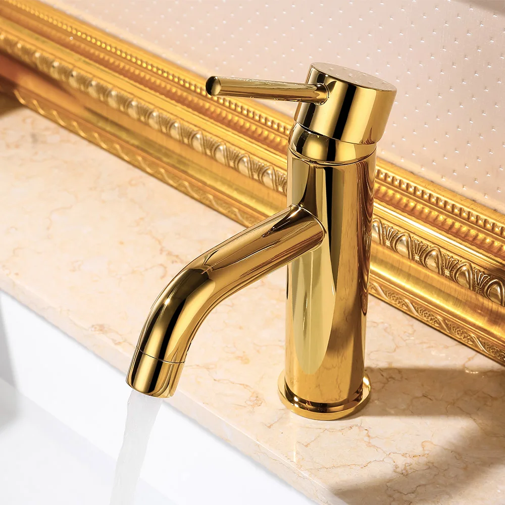 Robinet de salle de bains en laiton Noir mat et or de Style rond.