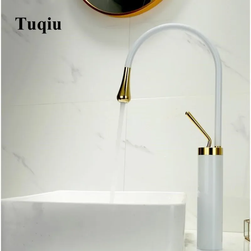 Robinet mitigeur de lavabo à levier unique et bec pivotant à 360 degrés en laiton pour salle de bains blanc et noir nouveauté