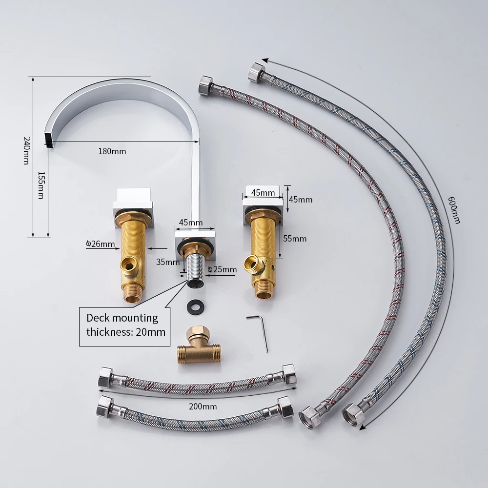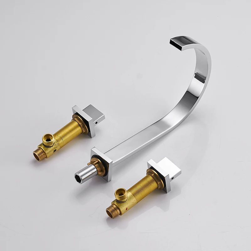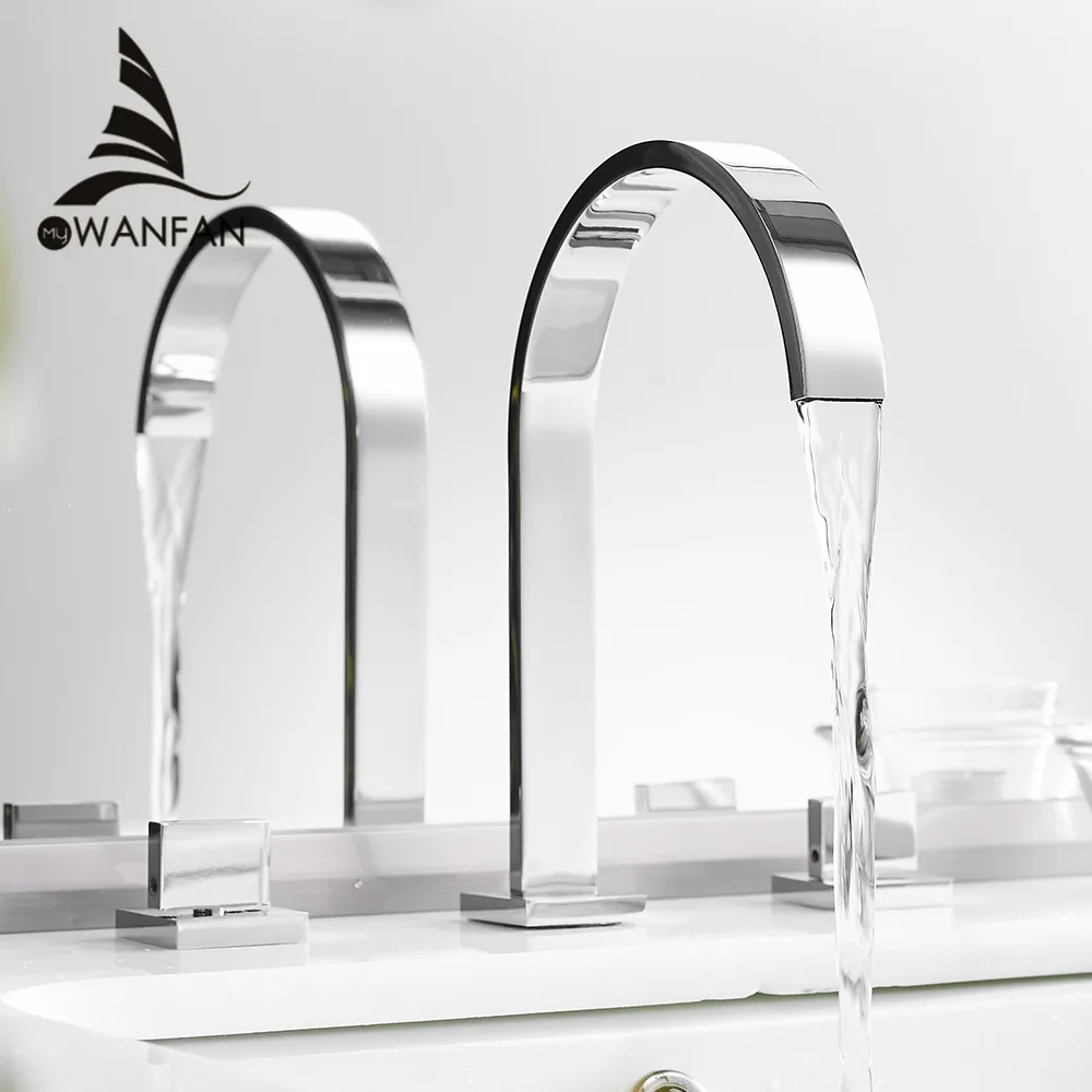 Robinets de bassin en laiton poli Chrome pont monté carré salle de bain évier robinets 3 trous Double poignée eau chaude et froide robinet LT-109.