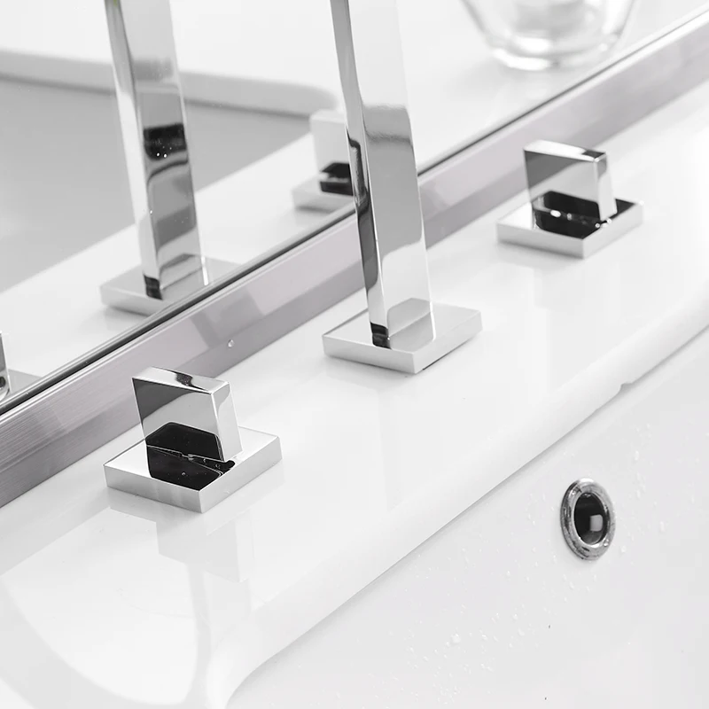Robinets de bassin en laiton poli Chrome pont monté carré salle de bain évier robinets 3 trous Double poignée eau chaude et froide robinet LT-109