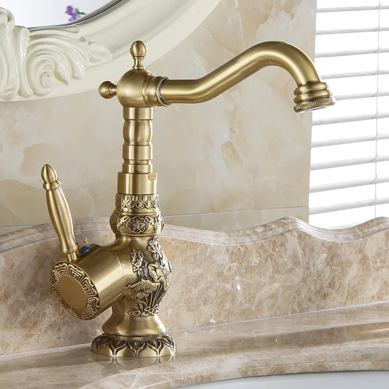 Robinets de Lavabo en laiton Antique Robinet de salle de bains Grifo robinet de Lavabo rotatif à une poignée robinets mélangeurs d'eau chaude et froide grue