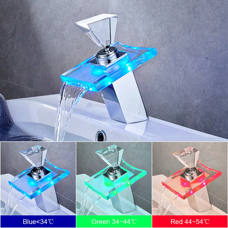 ROVATE lumière Led robinet de lavabo salle de bain cascade robinets changement de température couleur monotrou pont monté robinet de lavabo