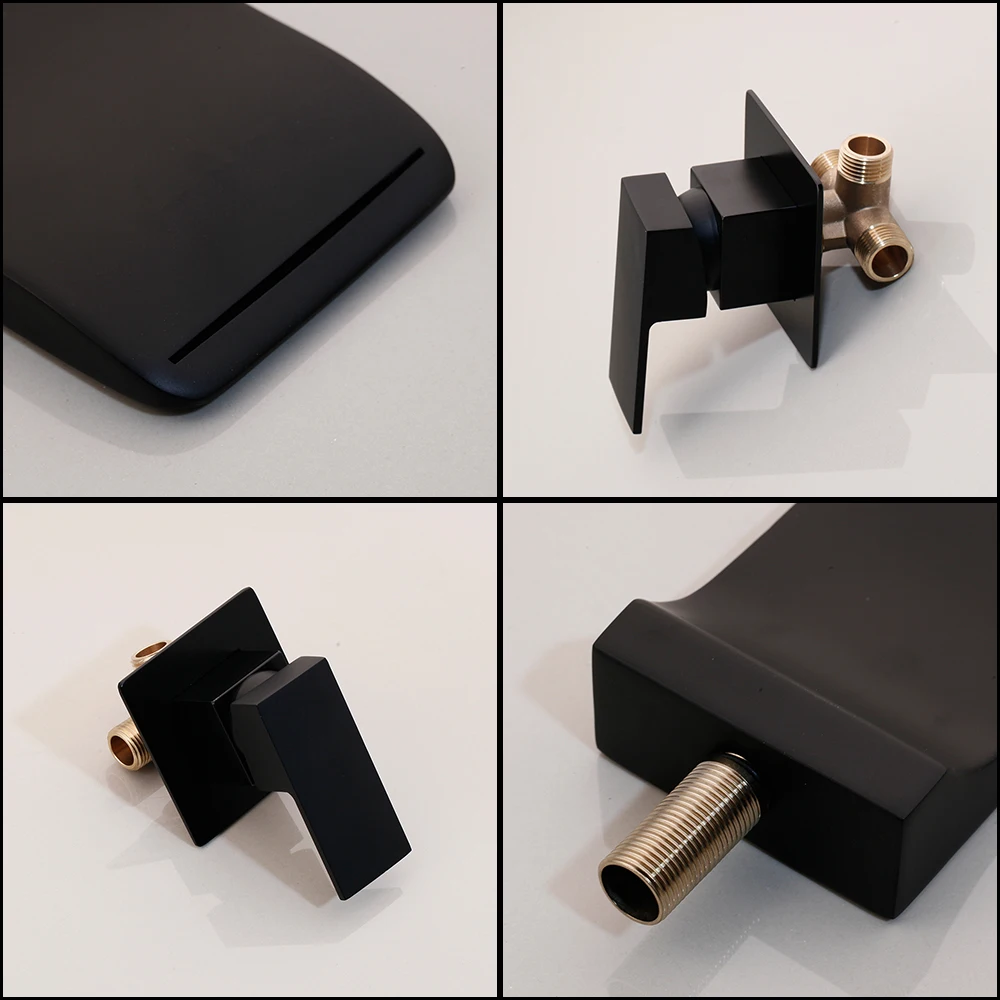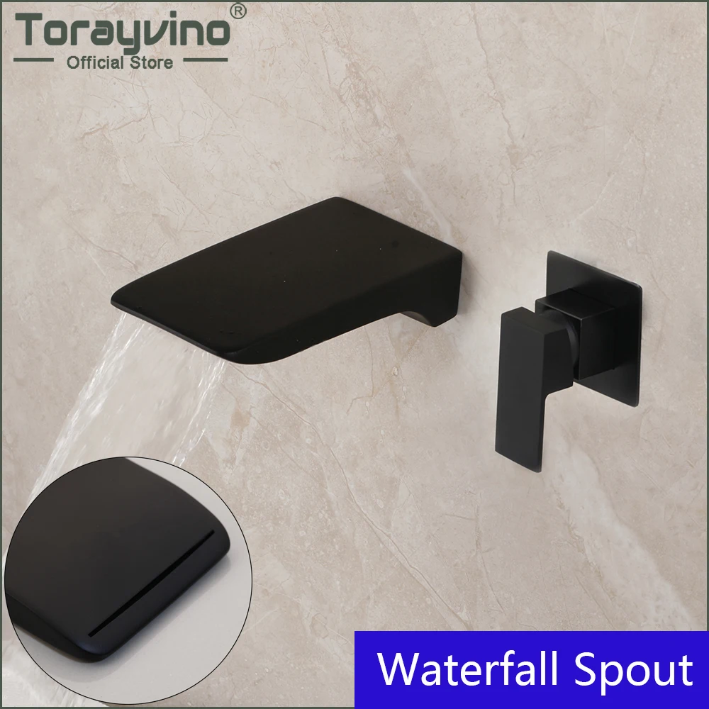 Torayvino robinet mitigeur chaud et froid en laiton massif noir mat lavabo robinet cascade pour baignoire à une poignée.
